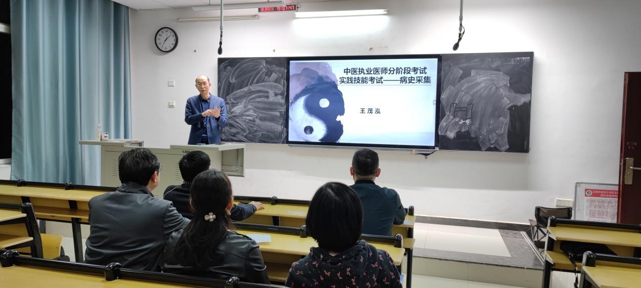 图为3月10日晚上阳明教学楼403教室,中医内科学教研室王茂泓主讲,开展《病史采集、中医常见病》教师培训。
