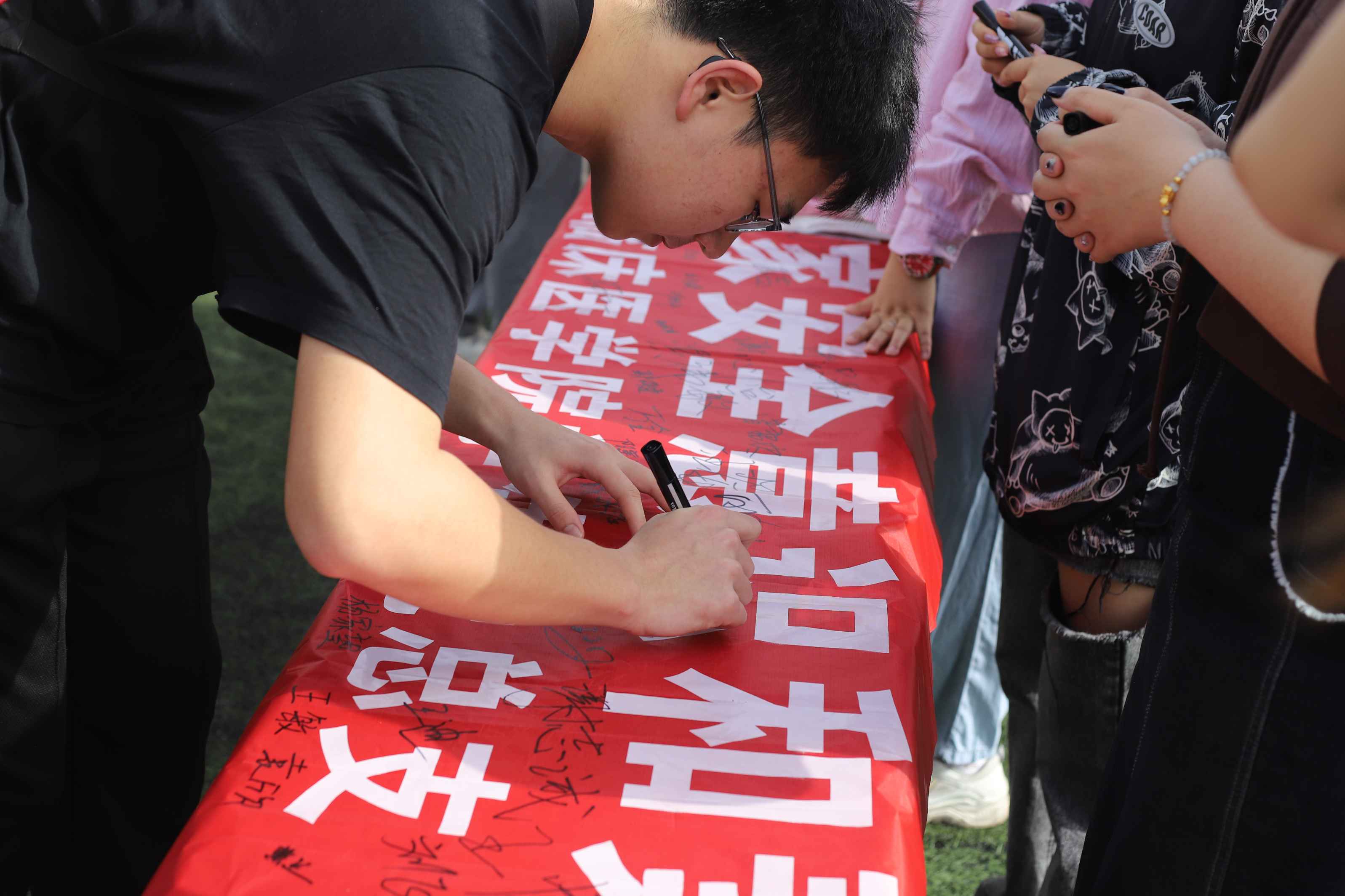 15日上午于田径运动场组织开展国家安全教育日横幅签名活动。活动现场,同学们纷纷在横幅上面签字留念,以示对国家安全的关注和支持,自觉带头践行国家安全法规,用实际行动筑牢、护卫国家安全墙。