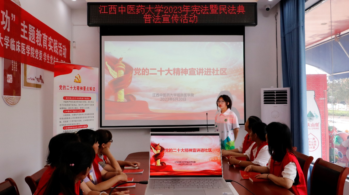 江中新闻网讯(通讯员 肖乔枫 赖丽珍 学生记者 康正阳 )为深入学习宣传贯彻习近平新时代中国特色社会主义思想和党的二十大精神,引导广大青年学生自觉听党话、跟党走,帮助学生上好与现实相结合的“大思政课”,临床医学院“青囊益站”社会实践服务队自6月29日起赴宜春樟树市、吉安万安县和九江武宁县多地开展2023暑期“三下乡”社会实践活动。