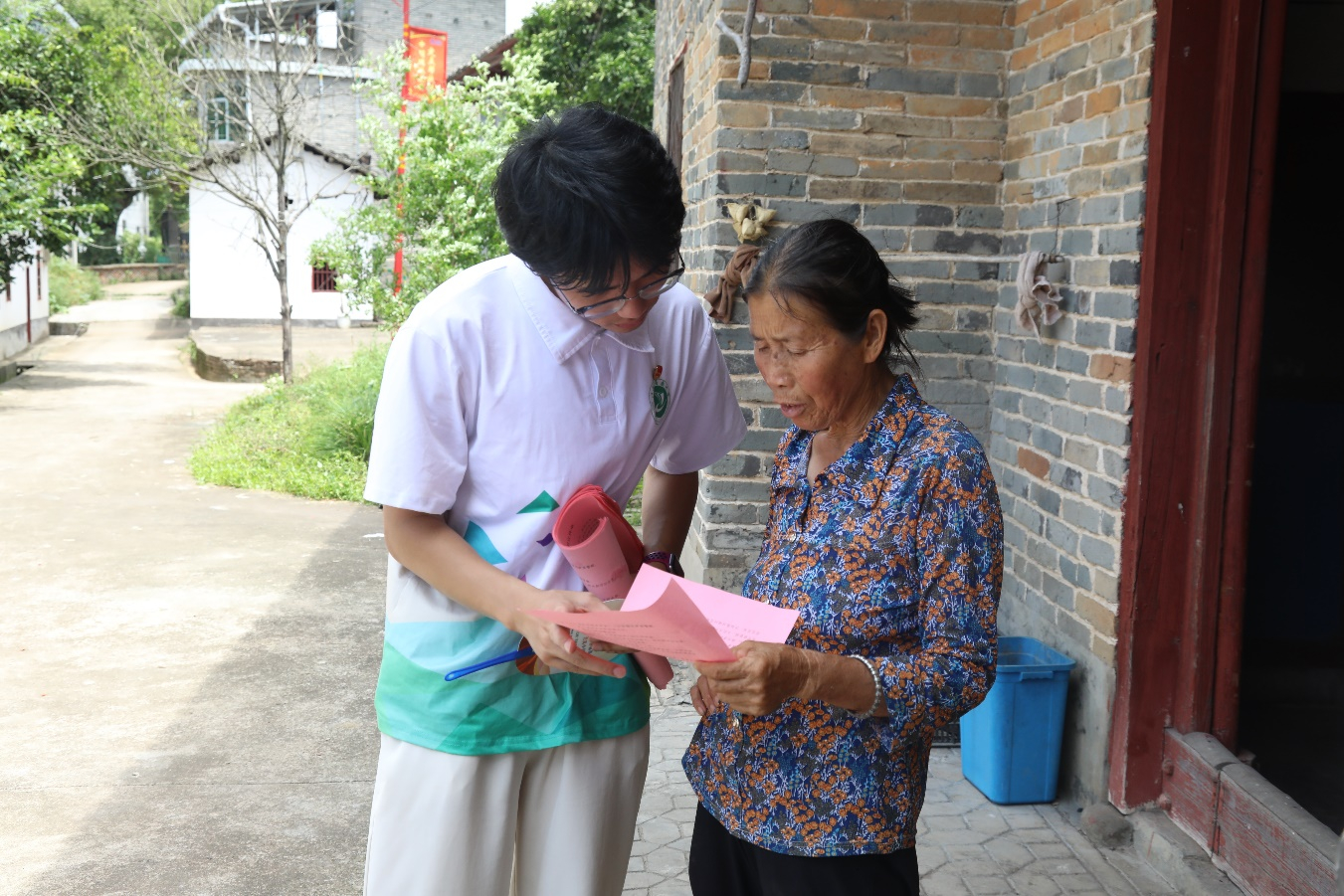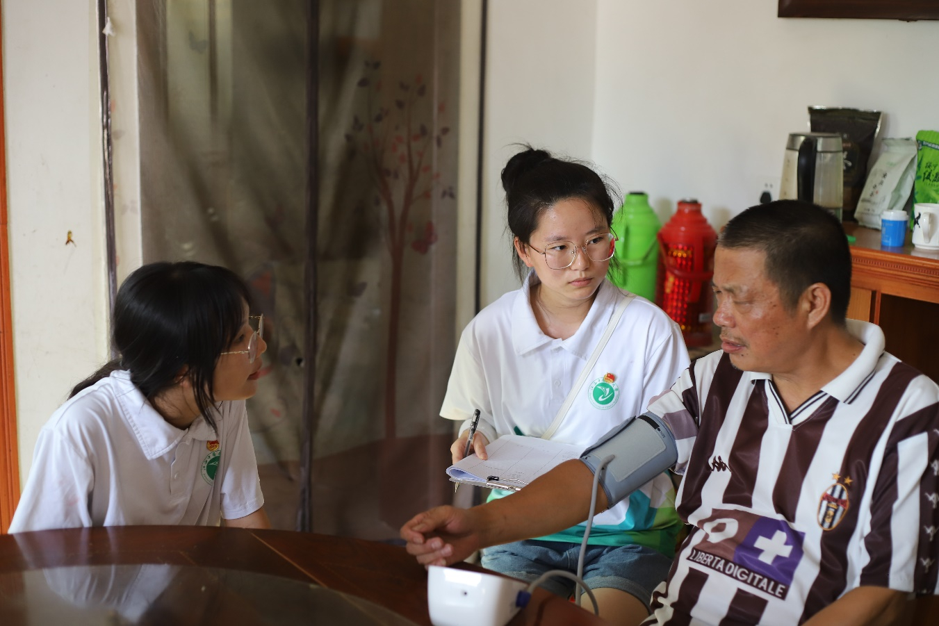 在万安县西元村、罗塘村等地,学院“青囊益站”社会实践服务队志愿者们不畏灼灼烈日,走过田野阡陌,深入村民家中询问健康状况。志愿者们通过问卷调查、血压测量等方式,详细记录村民的健康数据,尽自己所学解答村民咨询的各类健康问题,提醒居民定期检查身体,养成健康合理的生活习惯。