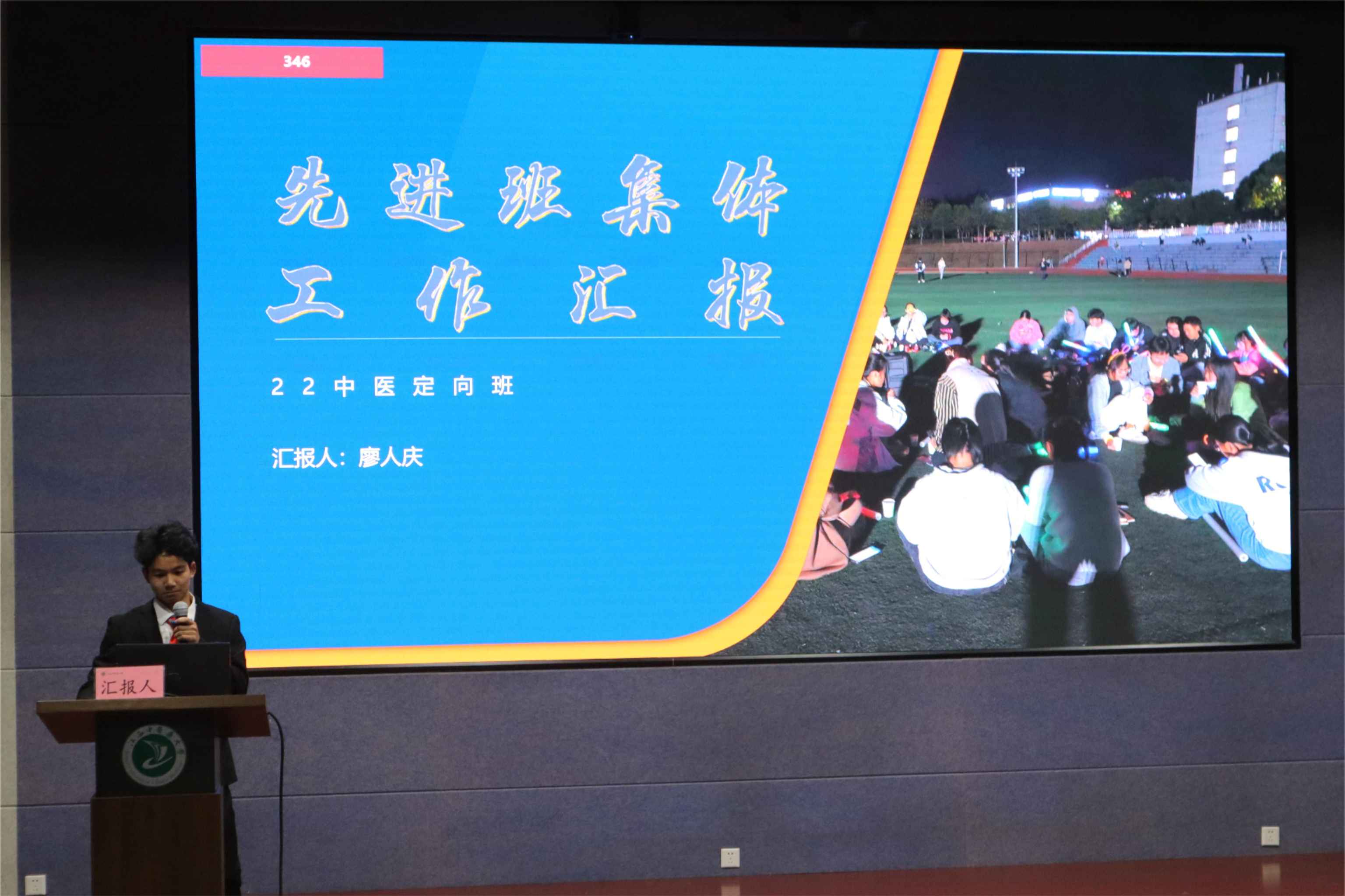 活动伊始,由主持人介绍活动的相关流程和评选规则。随后,各班级汇报人结合班级各方面的相关数据,通过PPT展示的形式,分别从班级管理、思想建设、荣誉展示、总结反思以及未来展望等几个方面,依次汇报一年以来班级的总体表现情况,极力展现班级风貌。