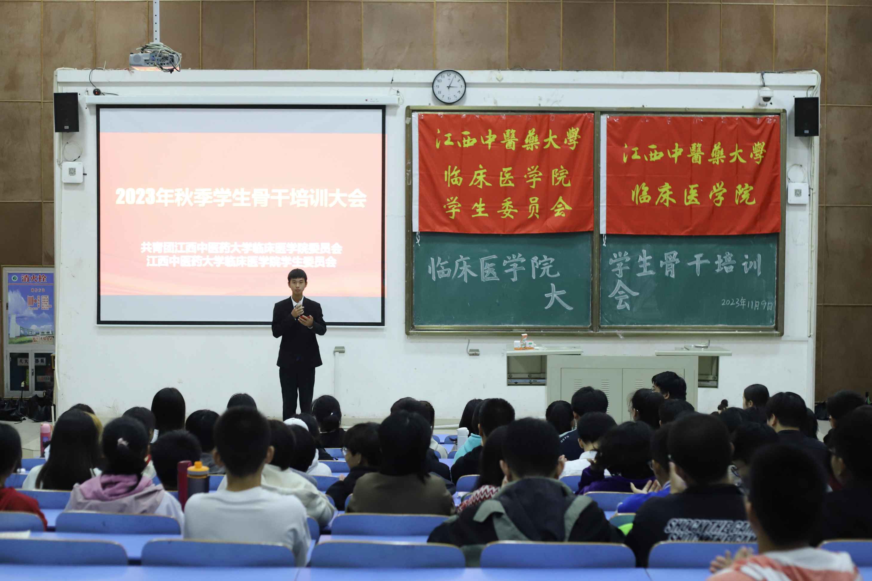 为提升学生骨干队伍整体素质,培养学生骨干文明向上的精神面貌,11月9日晚,临床医学院于知行楼T4教室召开秋季学生骨干培训大会,临床医学院学生会全体成员参与此次培训。