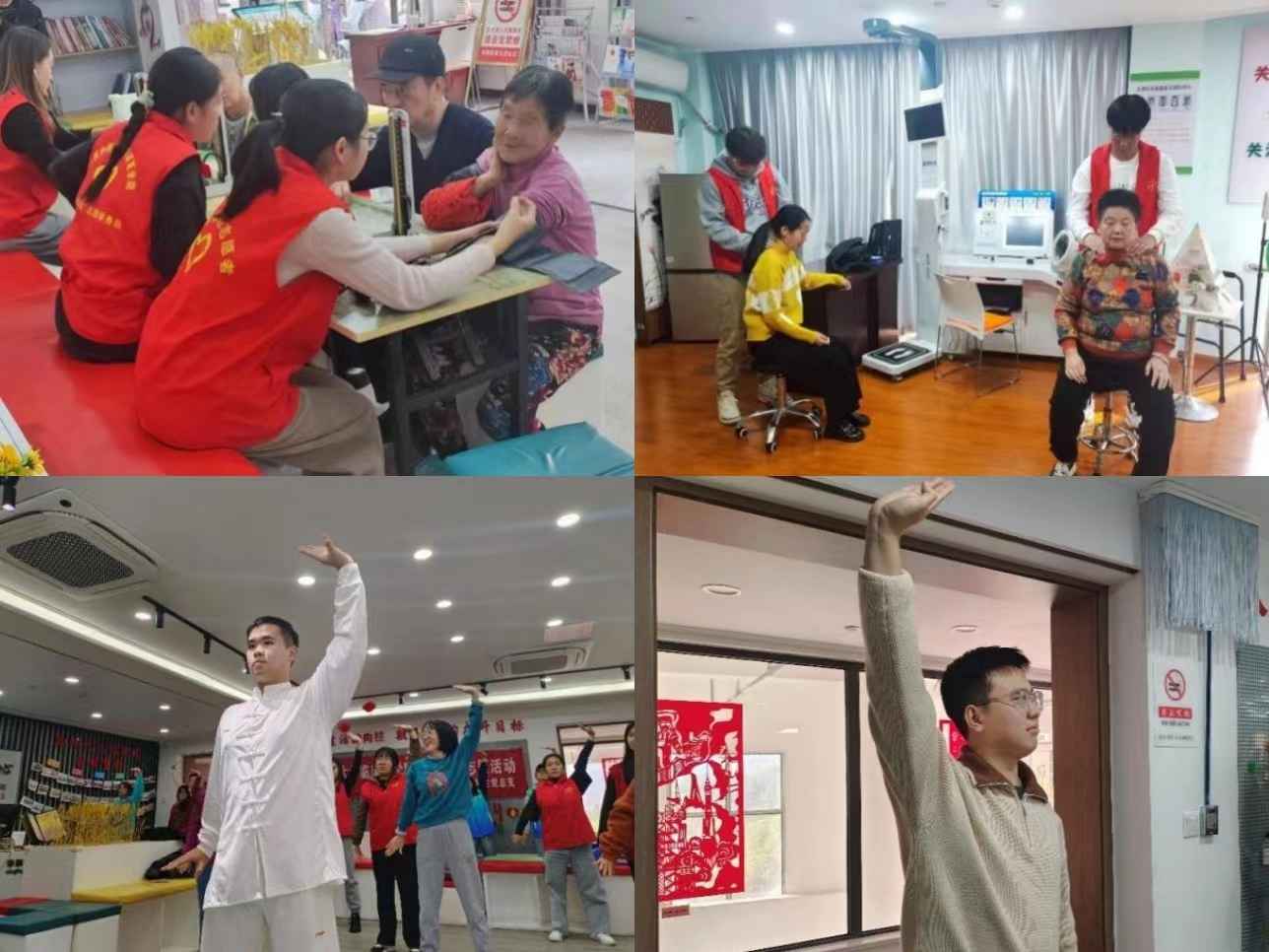 此次志愿活动分为义诊、中医养生知识宣讲、结核病防治知识宣传、防诈骗知识宣传、中医传统功法教学等环节。志愿者们为社区居民现场普及中医养生知识,并表演、教学二十四式太极拳、八段锦等健身功法,讲解健身气功的养生功效、原理以及动作要领,帮助居民通过运动养生调理身体。最后,青年宣讲队的同学们宣讲了预防结核病和防电信诈骗知识,用案例教学的方式提高群众的自我保护意识。