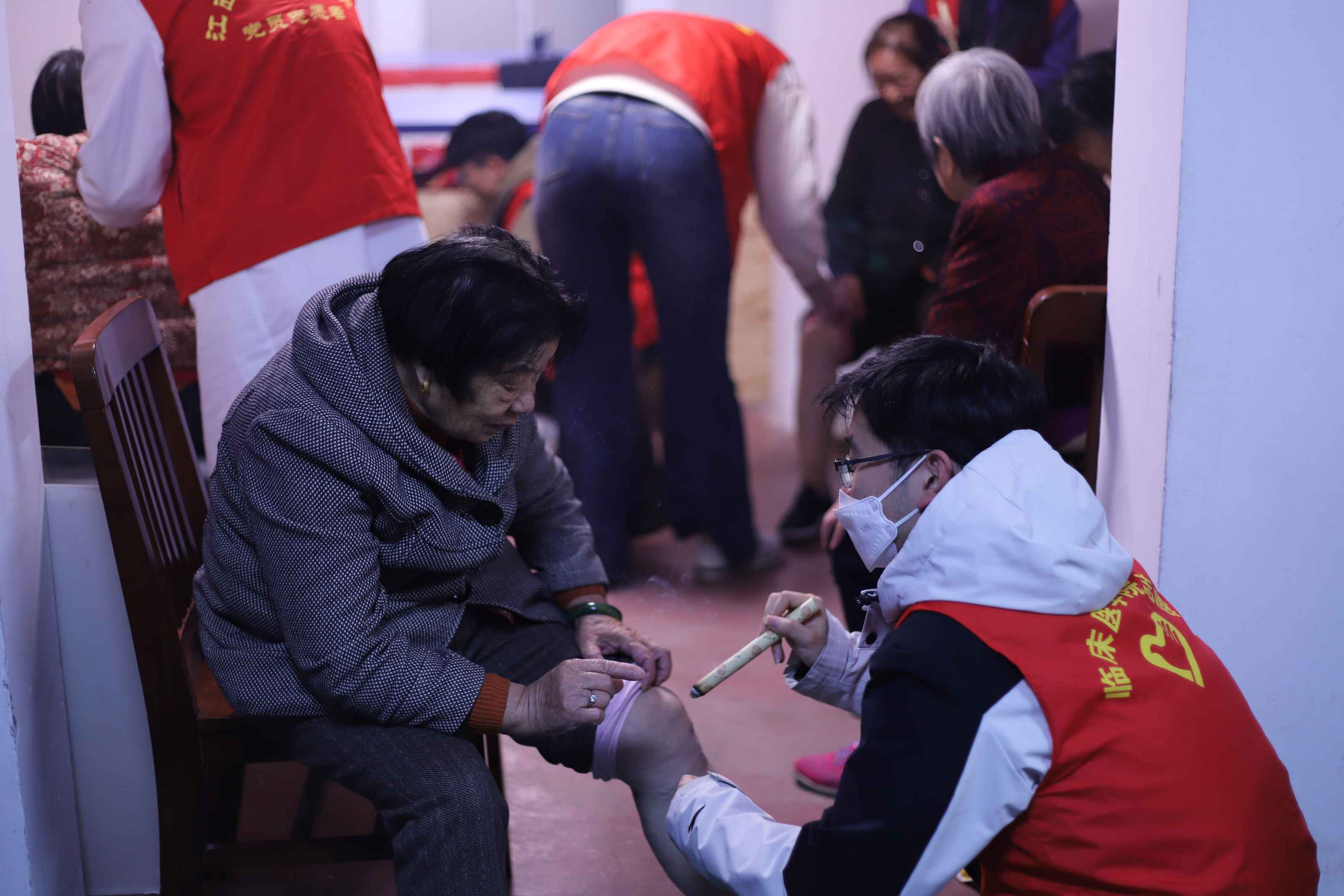 “艾灸的部位暖暖的,很舒服。”“腰上酸痛的地方这样灸一下,痛感都少了很多。”居民在进行艾灸时,纷纷感慨小小艾条的神奇。艾灸前,学生党员细心询问居民的身体状况,耐心聆听居民对身体疼痛部位的描述,之后再对相应的穴位进行艾灸。服务过程中,学生党员还贴心询问居民的诊疗感受,用通俗易懂的语言与居民交流,讲解中医药知识,不断拉近彼此距离,现场气氛融洽温馨。