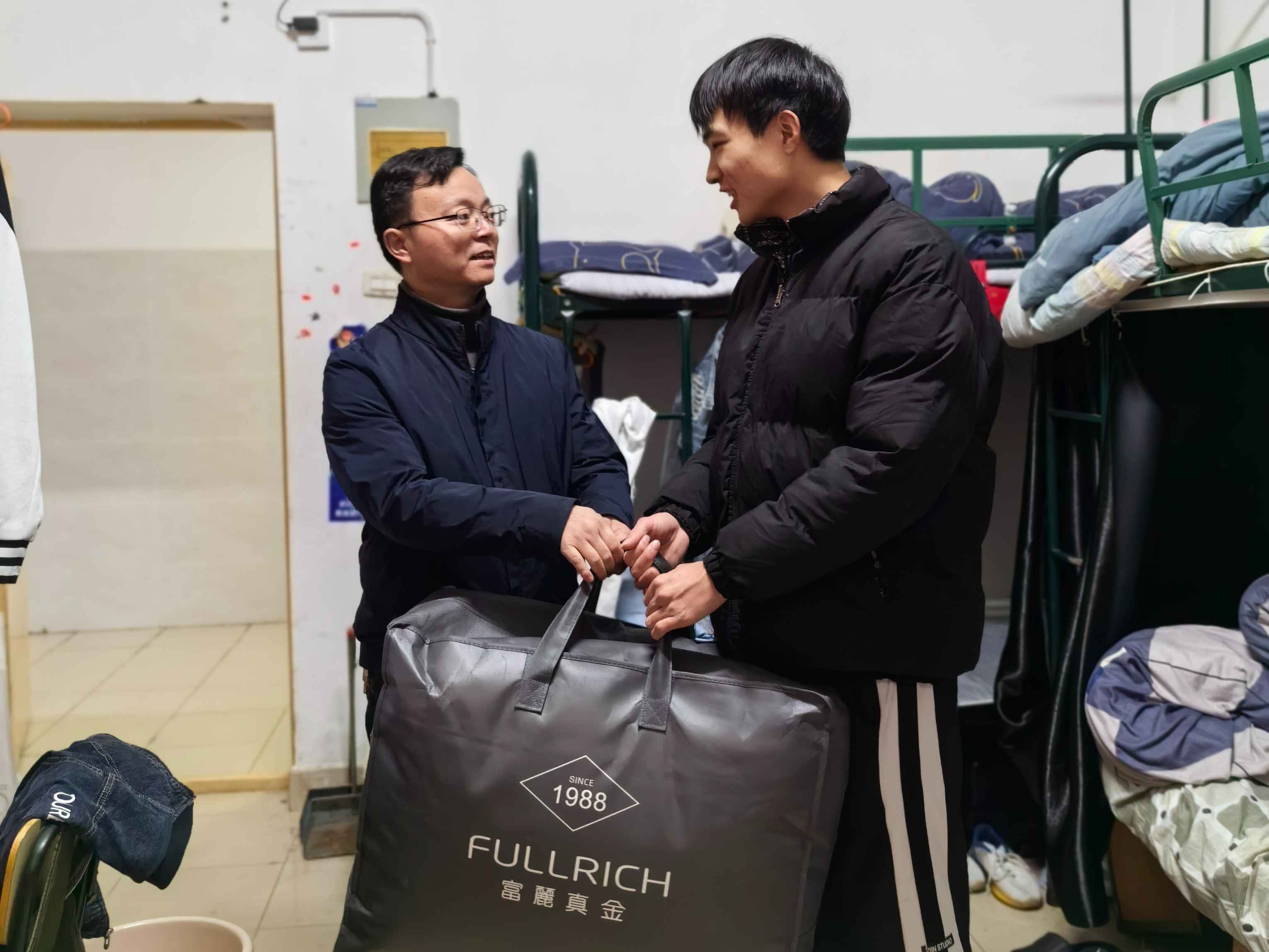 12月18日,邹浪副书记将御寒棉被亲自送到受资助学子手中,亲切询问同学们近期的学业情况、生活情况,提醒同学们注意冬季防寒保暖,以良好的身体状态进行期末备考,同时勉励同学们发扬“自尊、自爱、自立、自强”的精神,努力克服学习、生活中的困难。同学们对学校和学院提供的人文关怀表示感谢,纷纷表示会将感恩之心化作学习的动力,以实际行动回报学校、回馈社会。