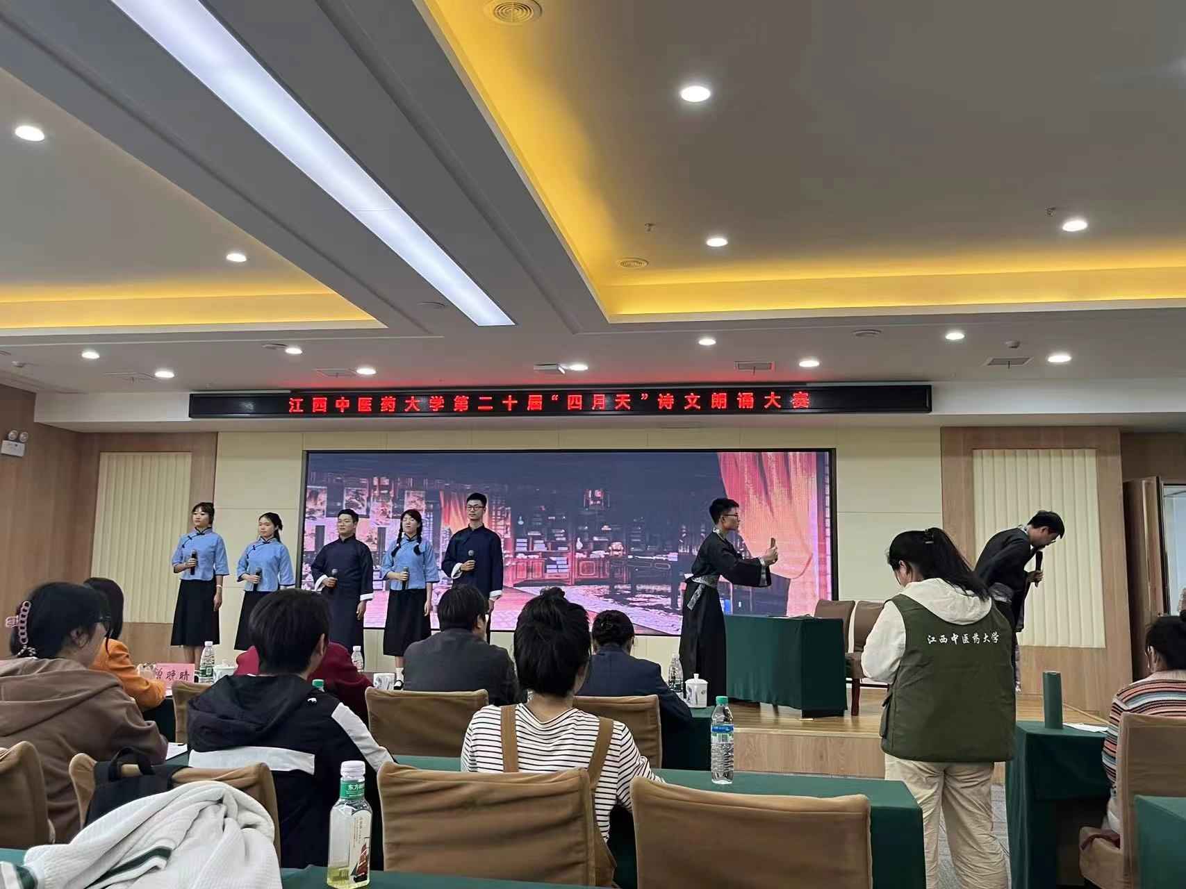 喜迎江西中医药大学本科教育六十五周年,展现中医药文化的精神内涵与时代价值,歌颂中医药文化传承的匠人精神,4月12日下午,我校于得月楼第一会议室开展第二十届“四月天”诗文朗诵艺术周活动诗文朗诵大赛。在此次大赛中,临床医学院的诗文朗诵《本草》荣获二等奖。