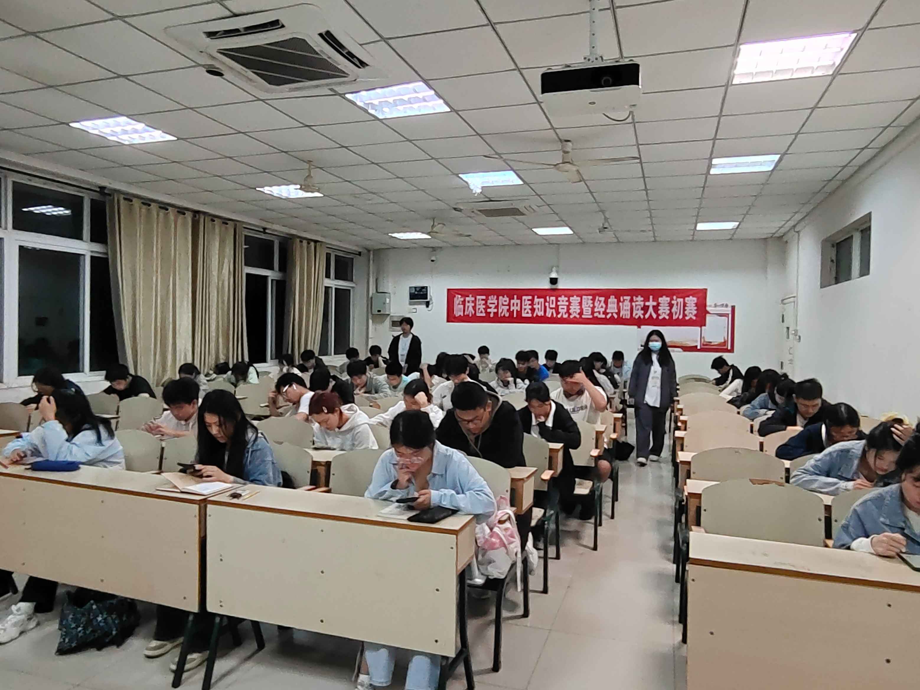 为弘扬中医药文化,加强学生对中医药知识的理解与掌握,迎接江西中医药大学65周年校庆,5月5日,临床医学院于各班晚点名教室开展以“诵中医之典,承岐黄之术”为主题的中医知识竞赛暨经典诵读初赛,临床医学院2022级全体学生均参与本次比赛。