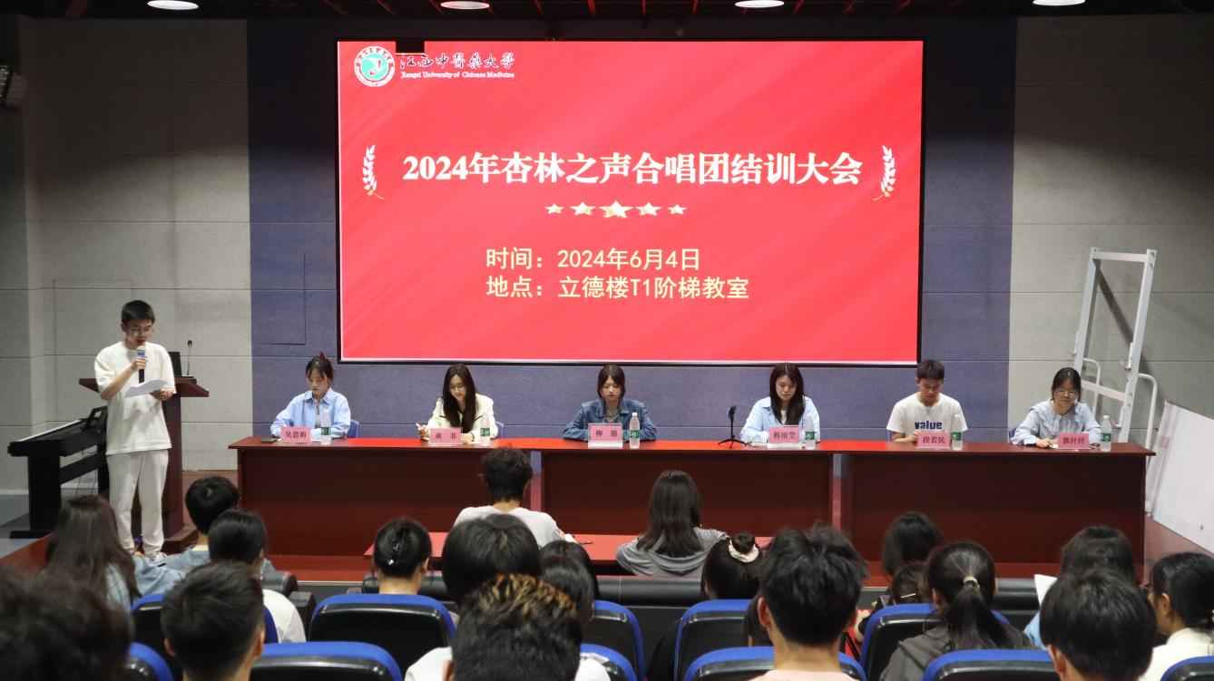 6月4日,杏林之声合唱团在立德楼T1教室举行杏林之声合唱团2024年结训大会。杏林之声合唱团指导老师韩雨莹、团长柳璐、各声部部长以及22、23级的全体团员们参加此次会议,合唱团团员王浩宇主持会议。