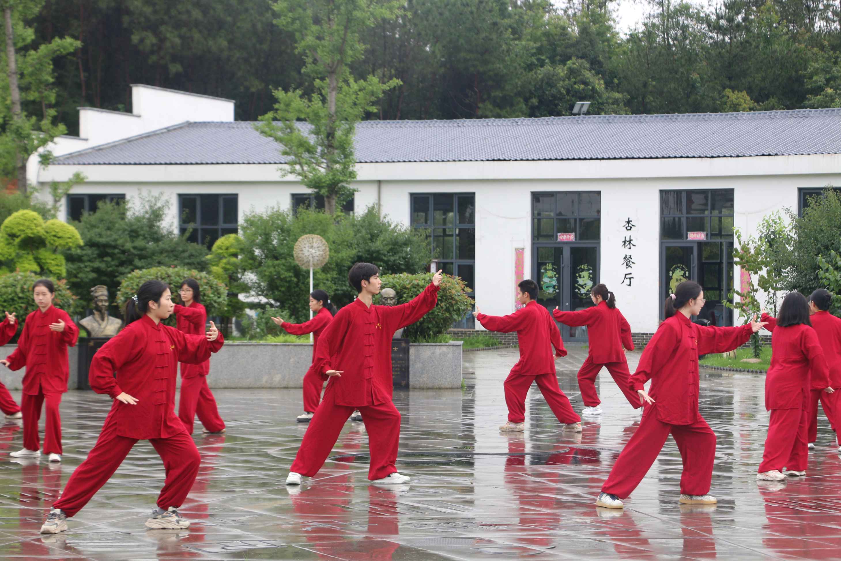 太极功法是集颐养性情、强身健体等功能于一体,结合吐纳之术形成的一种内外兼修、调和阴阳的中国传统功法。起式,抱球,野马分鬃,揽雀尾,高踏马,左右下势独立……在庐康中药谷的杏林广场,伴随着悠扬柔和的音乐,队员们气宇轩昂地进行太极功法表演。动作行云流水,一推一吸尽显太极进退有度的特点,一锤一揽彰显太极刚柔并济的特色,阴阳结合,与脚下的太极八卦图交相辉映,展现出队员们天人合一的精神面貌。