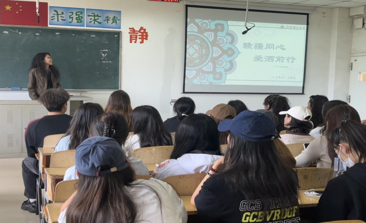 活动伊始,学生代表致辞开幕,表达节日祝福,全体师生唱响国歌。随后,来自江西师范大学的热衣赛为同学们带来关于爱国主义和推广普通话的演讲,并分享个人经验。学生代表夏伊旦同学带领全体学生朗诵以“祖孙三代护边70余年!致敬"人民卫士"巴依卡·凯力迪别克”为主题的红色故事,表达了同学们对他们的敬佩和赞美。最后,在帕提麦同学的带领下,全体学生大声合唱《我和我的祖国》。本次活动在激昂的歌声中落下帷幕。