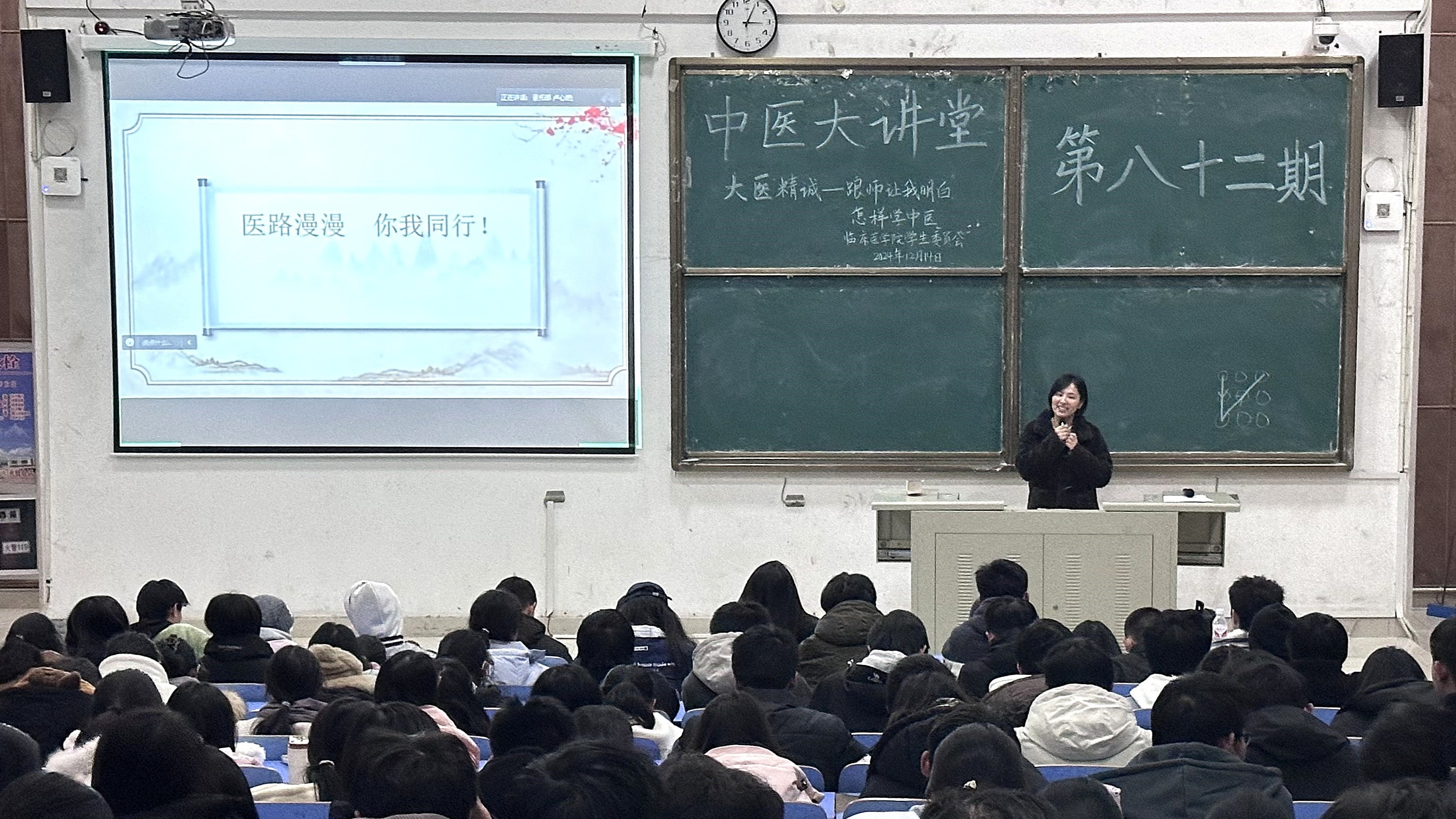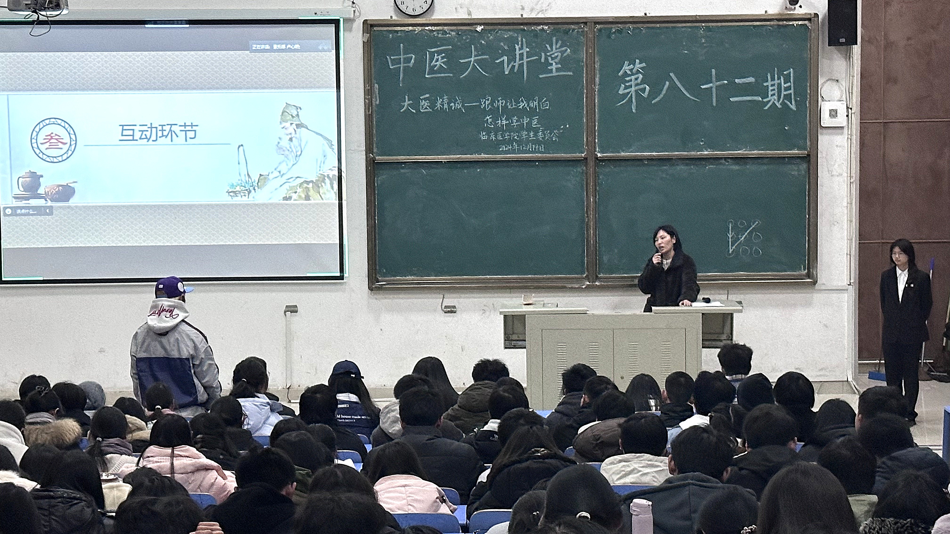 为引导学生深入理解中医学习之道,体会临床实践与理论结合的重要性,激发学生对中医经典研读的热情,12月14日,临床医学院于知行楼T4阶梯教室举办以“大医精诚-跟师让我明白怎样学中医”为主题的第八十二期中医大讲堂活动。永康市中医院副主任医师蒋思思做客本期讲堂。