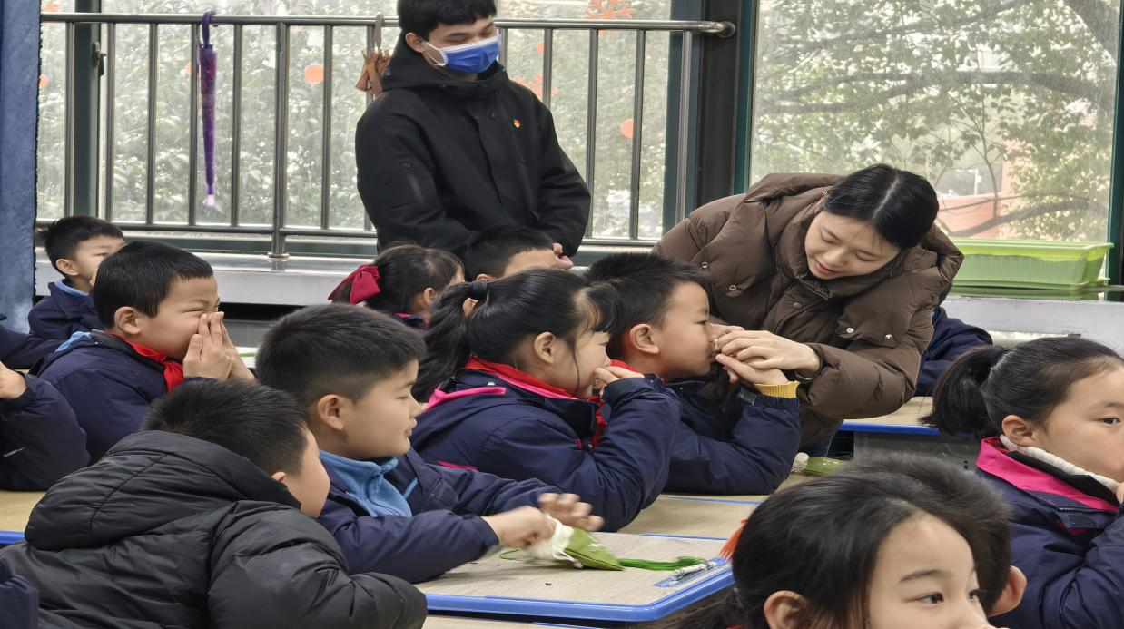 随后,支部党员结合中医知识教授小朋友们生姜红糖水的制作方法,并科普其驱寒功效。这一活动将雷锋的“暖心行动”与中医“治未病”理念巧妙结合。在中医药和穴位小课堂中,党员志愿者带领孩子们学习枸杞、大枣、菊花和山楂等常见药材的功效,手把手教授合谷穴与迎香穴的按压方法。小朋友们积极举手,回顾所学的中医知识并收获了中药香囊等礼物。
