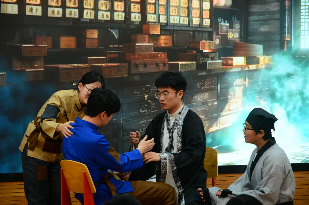 活动伊始,临床医学院全体师生齐唱团歌。随后,各班级团支部成员依次登台,为大家带来了精彩纷呈的节目。同学们将青春活力与对党的忠诚、对中医文化的传承紧密相连。成员们通过精心编排的情景剧,生动演绎着各类红色故事,展现出革命先辈英勇无畏的气魄和医药大家悬壶济世的情怀。现场观众仿佛穿越时空,置身于那段波澜壮阔的岁月中。
