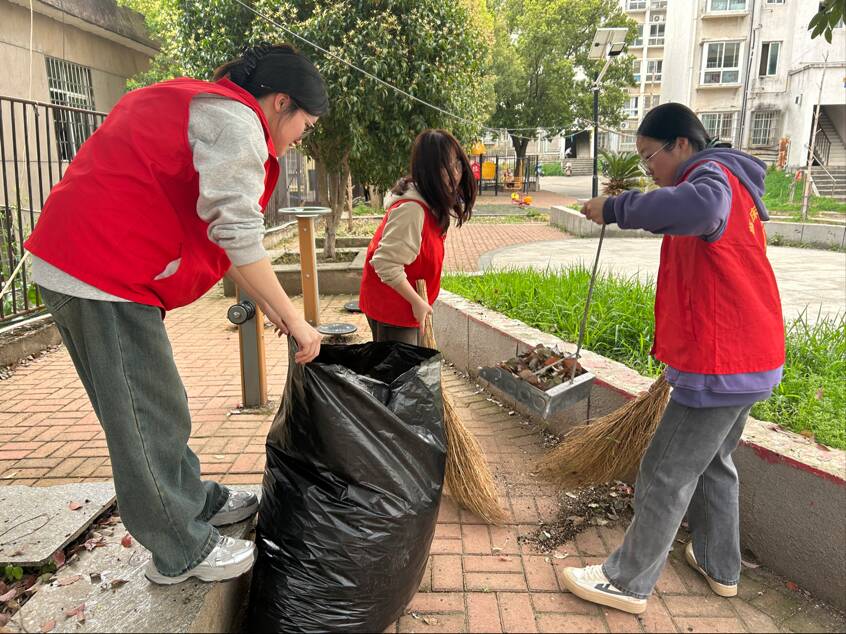 下午3点整,党支部成员准时在小区门口集合,有条不紊地准备清洁工具。在负责人的带领下,学生党员和入党积极分子们有序地开启了志愿服务工作。他们纷纷挽起衣角,不放过任何一个角落,认真清理堆积的杂物,细心捡起隐藏在草丛中的垃圾,耐心擦拭社区宣传栏,使其恢复了往日的整洁与明亮。