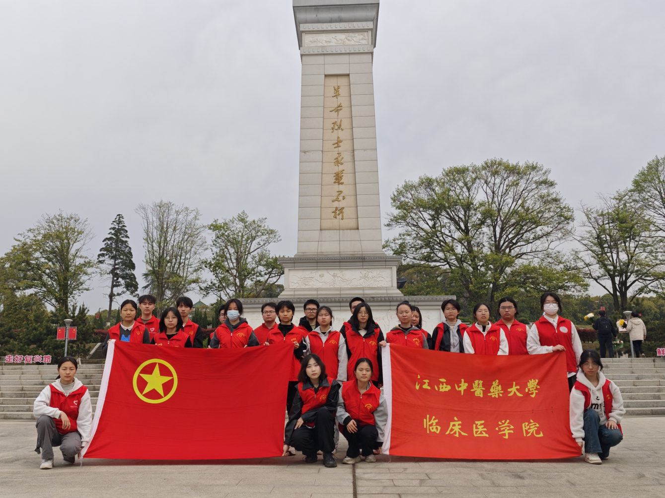 4月4日,正值清明节,南昌市革命烈士陵园内松柏凝翠,一片庄严肃穆的景象。在这个特殊的日子里,怀着对革命先烈的崇高敬意,临床医学院学生第一党支部联合2023级中医1团支部、2023级中医2团支部,齐聚于此,开展“赓续红色血脉·砥砺医者初心”祭扫活动。