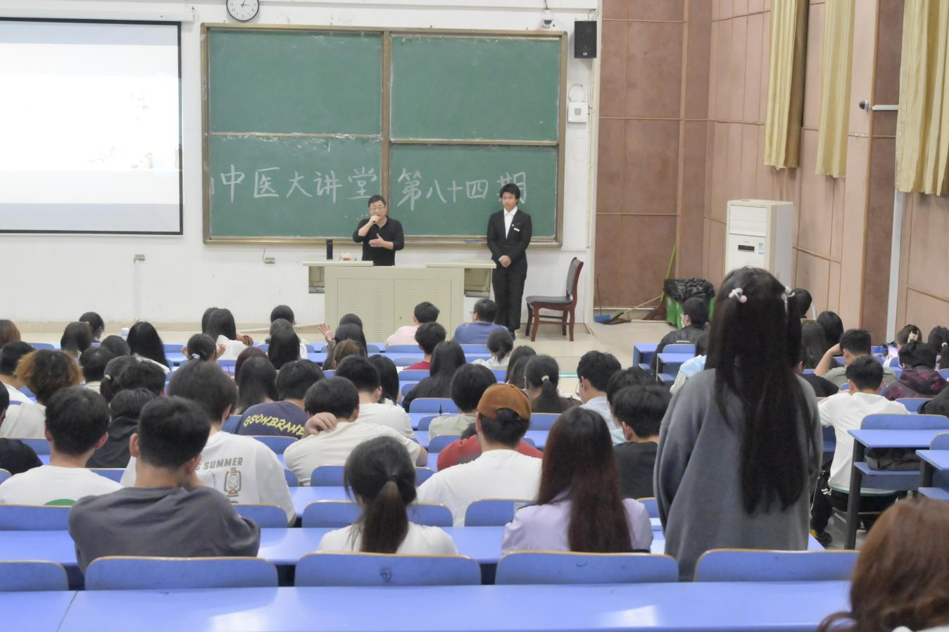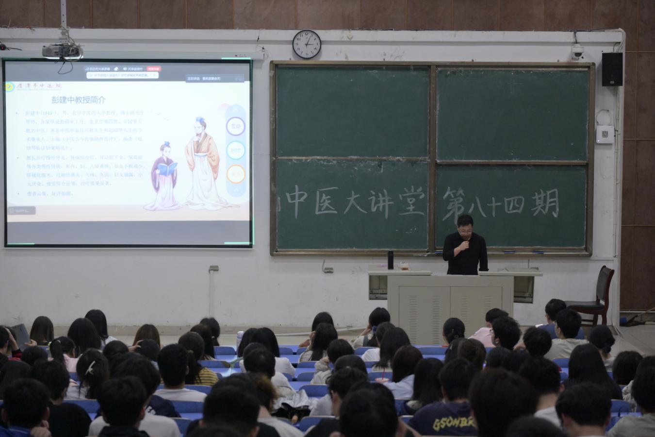 为进一步强化中医临床思维培养,培养高质量中医药人才队伍,4月19日,由教务处主办、临床医学院承办的江西中医药大学第八十四期《中医大讲堂》于知行楼T4阶梯教室开展。鹰潭市中医院老年医学科主任医师吴金飞做客本期讲堂。临床医学院、岐黄国医书院和针灸推拿学院共计130余名同学参与本次讲座。