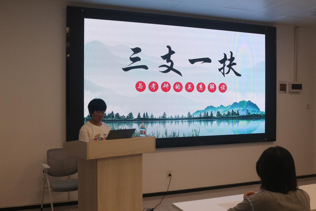 “三支一扶”计划包括支教、支农、支医和乡村振兴四个方向,旨在面向基层为高校应届毕业生落实就业问题提供具体保障和指导。会上,徐宏磊从“三支一扶”计划的招募对象、招募条件、招募程序三个方面给现场的同学们进行了相关政策的解读。随后,她分享了自己的经历和切身体会,并结合官方政策文件为同学们分析“三支一扶”的待遇优势。她强调,在“三支一扶”期间的工作经历可以让考生更清楚自己的职业规划和学术兴趣,增强考研的个人竞争力。最后,现场徐老师与同学们进行深入的交流与讨论,并一一解答了同学们的疑问,鼓励同学们勇于到基层实践锻炼,增长才干。