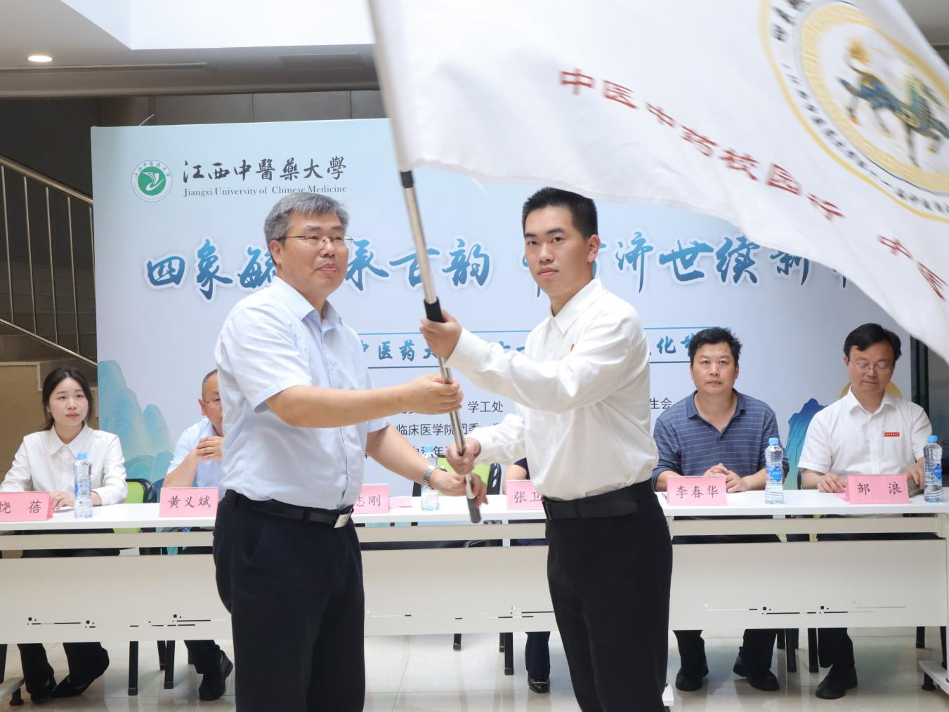 开幕式上,学校党委委员、副校长周志刚发表讲话,他鼓励同学们要积极进取,以中医药文化节为契机,向全社会展现中医药学子高度的责任感和使命感,不断推动中医药振兴发展。随后,周校长将“中医中药校园行 中医中药进社区”旗帜授予学生代表,此次第十一届中医药文化节正式开幕。
