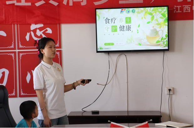 在安义县龙津镇东门社区的宣讲活动室里,展开了一场《承岐黄之道,扬红医之魂》为主题的红色宣讲活动。主讲人从革命精神出发,将伟大的建党精神和红医精神相结合,跟大家讲到:“今天是七一建党节,我们一起缅怀方志敏烈士,学习方志敏精神,重温方志敏同志用生命书写信仰的篇章。他在清贫与生命间的抉择,正是红医“人民至上”初心的鲜活体现。……”除此之外,队员还讲述了中医药在红色文化中的传承等,最后,与现场人员齐声诵读《可爱的中国》,共同体会母亲大地的每寸土地跳动着的“活跃跃的创造”,体会百年前烽火中的信仰,化作今日乡村振兴的星火!