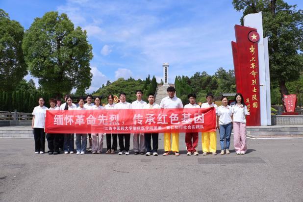 松柏苍翠,肃穆无言。7月1日,在这个镌刻着信仰光芒与民族希望的日子,江西中医药大学“青仁知行”社会实践队全体成员,带着沉重的心情步履庄重地走进安义革命烈士陵园缅怀先烈,铭记初心使命,凝聚奋进力量。全体人员瞻仰烈士墓碑,深入了解当地革命史,向英雄先烈们鞠躬默哀,深切缅怀。队员们面向党旗、团旗重温入党誓词、入团誓词,“我志愿加入……” 领誓的声音如金石掷地,骤然划破陵园的肃穆。全体师生右拳紧握,臂膀如林,面向鲜红的党旗与团旗,将滚烫的誓言一字一句刻入苍穹。一字一句,掷地有声,既是对入党、入团初心的回顾,更是对新时代青年使命担当的庄严承诺。