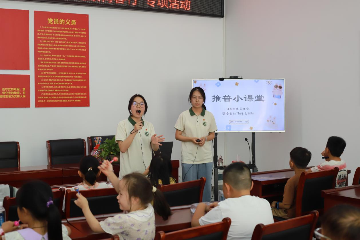 为精准提升乡村语言能力,助力城乡融合发展,江西中医药大学“青囊益站”社会实践队于2025年7月1日至3日走进龙门社区、潭头村、利村乡,开展了一场别开生面的普通话推广活动。通过趣味互动与生动教学,激发孩子们对普通话的兴趣,增强他们的语言表达能力和文化认同感。
