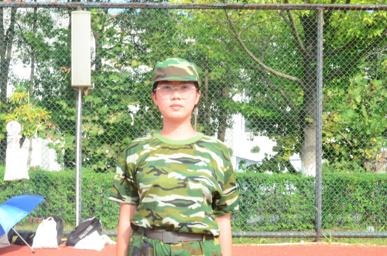 “在齐步跑中,我就是队伍的指挥棒,为队伍保驾护航。”她自豪地说。但在军训刚开始时,邱爱怡却是教官眼中的“刺头”。不论是转身,还是踢正步,她总是反应慢半拍,跟不上队伍节奏。“当时教官以为我和他对着干,拉我出列单独训练。”不过,她并没有安然待在舒适区中。接下来的日子中,总能看到队伍中的她眼神炯炯,聚精会神地聆听教官的指令。只要是在操场上,就算是在喝水,邱爱怡也不敢有丝毫松懈,总是在第一时间接收命令并完成。她的坚强意志带动了队伍氛围,高涨的情绪在全营上下弥漫。