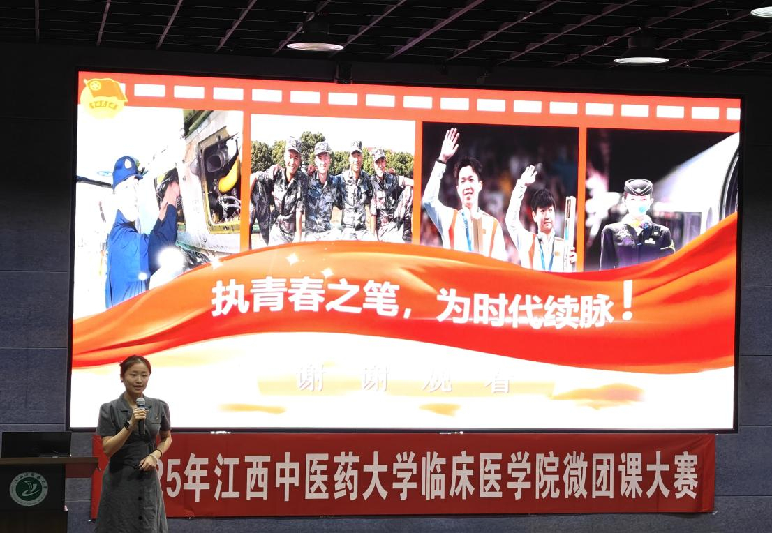 比赛尾声,评委结合此次微团课所蕴含的精神内核,号召全体杏林青年以榜样为镜,将这份力量融入到日常学习中。最后,经过一番紧张激烈的综合考量与审慎评定,24级中医骨伤3班颜俊杰、23级中西医临床2班黄嘉琦、24级中西医临床5班袁盈盈等十位同学进入决赛。