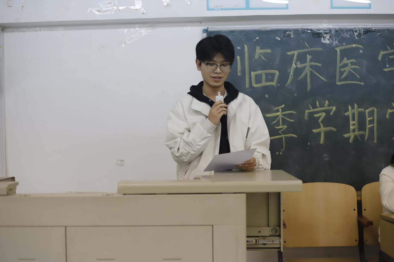 会议伊始,全体人员起立奏唱国歌,开班典礼在庄严的国歌齐唱中拉开序幕。会上,2024中医骨伤3班颜俊杰作为学员代表发言,他表示临床医学生肩负着“健康所系、性命相托”的誓言,应主动向党组织靠拢,为中医药事业发展和中华民族伟大复兴贡献力量。随后,专职组织员熊哲宣布培训班课程安排,明确教学内容和考核要求。培训班班主任赖丽珍宣布培训班相关注意事项。