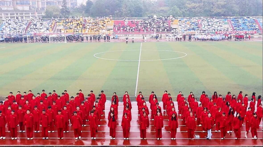 “传承岐黄之道,护佑百姓健康”,在举旗手的带领下,临床医学院学子身着红色太极院服,手持红扇,目光如炬地走在队伍前方。附属医院老师们则紧随其后,神情坚定,眼神中满是对学子们的期许与信赖。方阵站定,同学们迅速展开手中的红扇,向两边散开,为舞者空出施展的舞台。