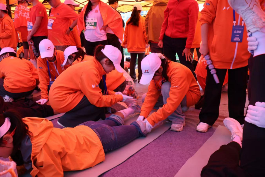 相聚南昌,致敬英雄。11月9日,2025年南昌马拉松在八一广场激情开跑。为发挥医学专业优势,守护赛道安全,彰显高校担当,临床医学院组织青年志愿者团队,在半程马拉松终点设立赛后恢复服务区,为选手提供专业拉伸与冰敷服务。