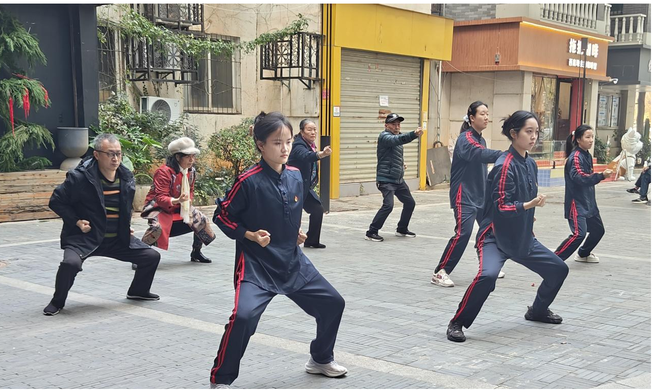 义诊现场,测量血糖、血压、中医推拿按摩有序进行,支部党员凭借扎实的专业知识为指标异常的居民提供健康指导与就医建议并告知相关注意事项。随后,学生党员从饮食调理、良好作息、运动健身等方面,向居民生动讲解了冬季养生知识和中医养生保健方法,内容丰富实用。最后,党员志愿者们开展八段锦现场教学,居民学习跟练,在亲身体验中感受传统功法的强身健体之效。
