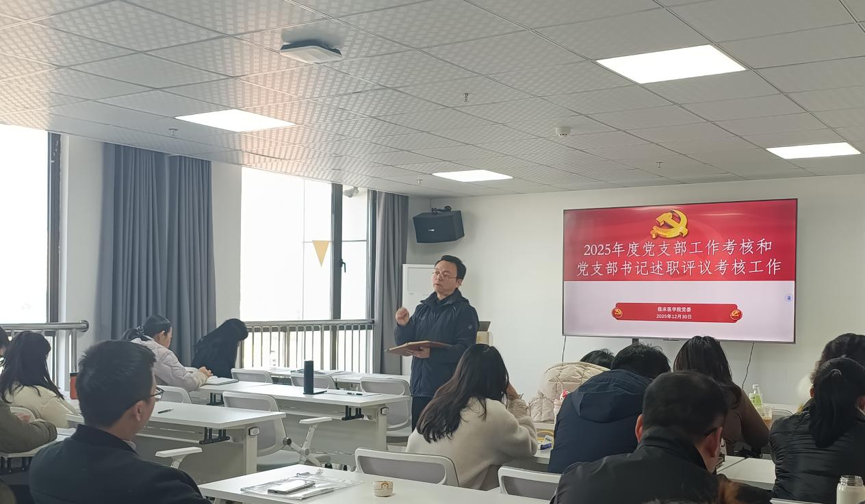 为深入学习贯彻习近平新时代中国特色社会主义思想,全面落实新时代党的建设总要求,深入检验基层党建工作成效,12月30日上午,临床医学院召开2025年度学生党支部工作考核与党支部书记述职评议会。学院各党支部书记、党员及群众代表参加会议。