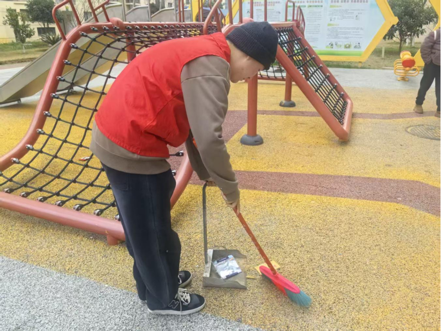 参与活动的学生党员们佩戴党徽,精神饱满地奔赴服务地点。到达磨南社区退役军人服务站后,同学们与社区工作人员顺利对接,领取由社区统一提供的清扫工具,在明确分工后立即投入到劳动中。有的手持扫帚认真清扫路面落叶与杂物,有的仔细用抹布擦拭宣传栏和公共设施,有的弯腰清理绿化带中的隐藏垃圾。整场志愿活动,大家分工协作、配合默契,现场秩序井然,充分彰显了学生党员不怕脏、不怕累、乐于奉献的优良作风。