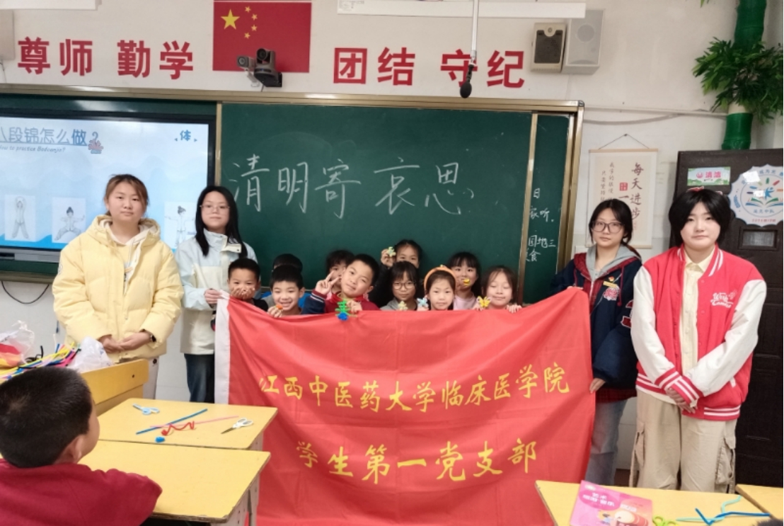清明将至,为传承中华优秀传统文化,厚植青少年家国情怀,引导广大学生树立挺膺担当的青春信念,近日,临床医学院学生第一党支部走进南昌师范附属实验小学红谷滩校区,组织开展了“清明寄相思 挺膺勇担当”主题党日活动。