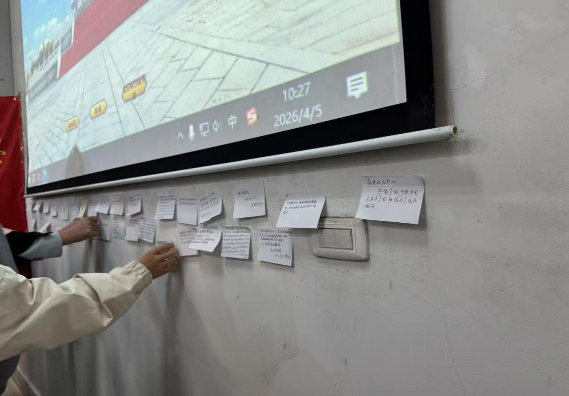 线下书香润初心,红色故事传薪火。4月5日上午,“清明忆英烈,书香传薪火”红色故事分享会在5107教室开展,在校团员青年们积极参与。主持人引领全体成员起立默哀一分钟,在肃穆氛围中缅怀先烈英灵。随后,主持人开始讲述红色故事,带领同学们重温峥嵘岁月的英雄事迹。“写下寄语的那一刻,仿佛真的与百年前的先辈隔空对话,他们的热血与信仰,是我们当代青年最珍贵的精神坐标。”在“时空对话”环节,同学们轮流发言,通过书写清明寄语的形式,与革命烈士跨越时空对话,诉说敬仰之情、传承之志,现场氛围庄重而感人。主持人总结发言,号召全体团员青年将红色精神融入日常学习与生活,转化为服务同学、踏实求学的实际行动。