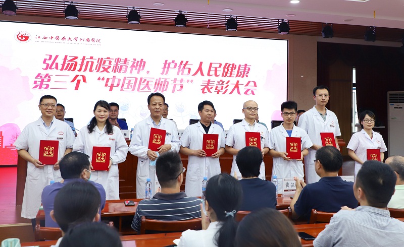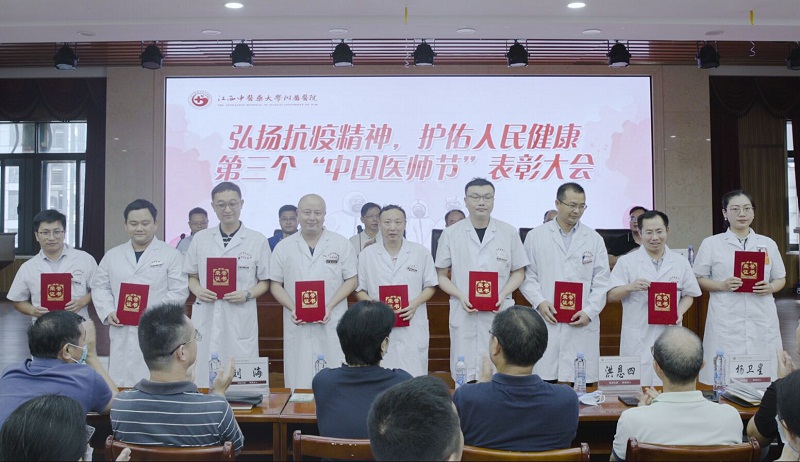 为深入贯彻落实习近平总书记关于疫情防控工作重要讲话和指示精神,庆祝第三个中国医师节,弘扬医务工作者在新冠肺炎疫情防控斗争中涌现出的先进典型和感人事迹,进一步激发医院医师队伍工作激情,表彰先进、树立典型,在全院营造尊医重卫的良好氛围。8月18日下午,江西省中医院隆重举行了医师节庆祝表彰大会。医院党委书记刘中勇等全体医院领导,医院中层干部,获奖医师代表参加大会。会议由党委副书记翁剑锋主持。