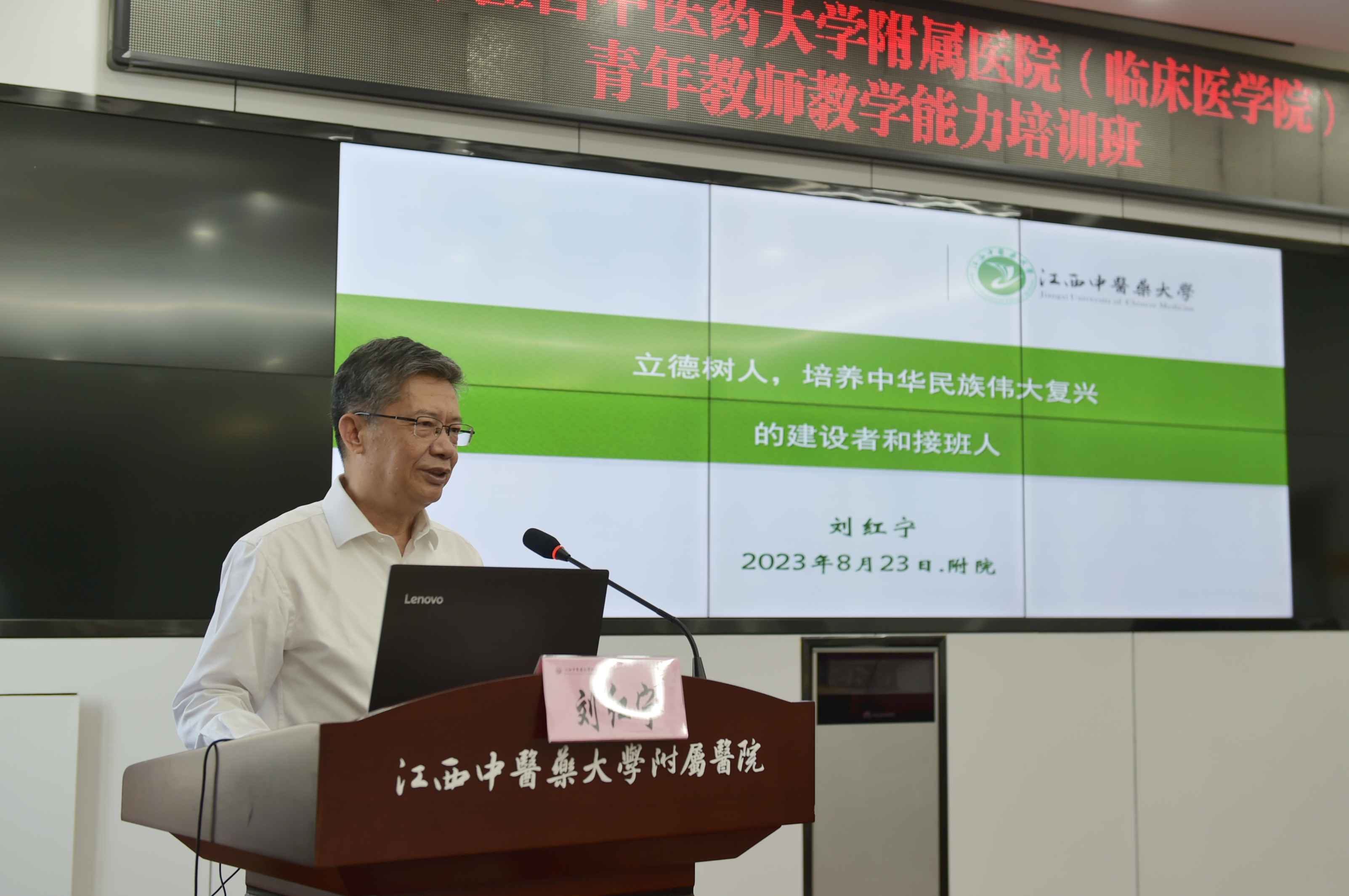 8月23日下午,江西中医药大学首席教授、高等研究院院长、学校原党委书记刘红宁教授来到我院,为我院青年教师做题为《立德树人,培养中华民族伟大复兴的建设者和接班人》专题辅导报告。学校党委委员、副校长、附属医院(临床医学院)党委书记严小军主持报告会。