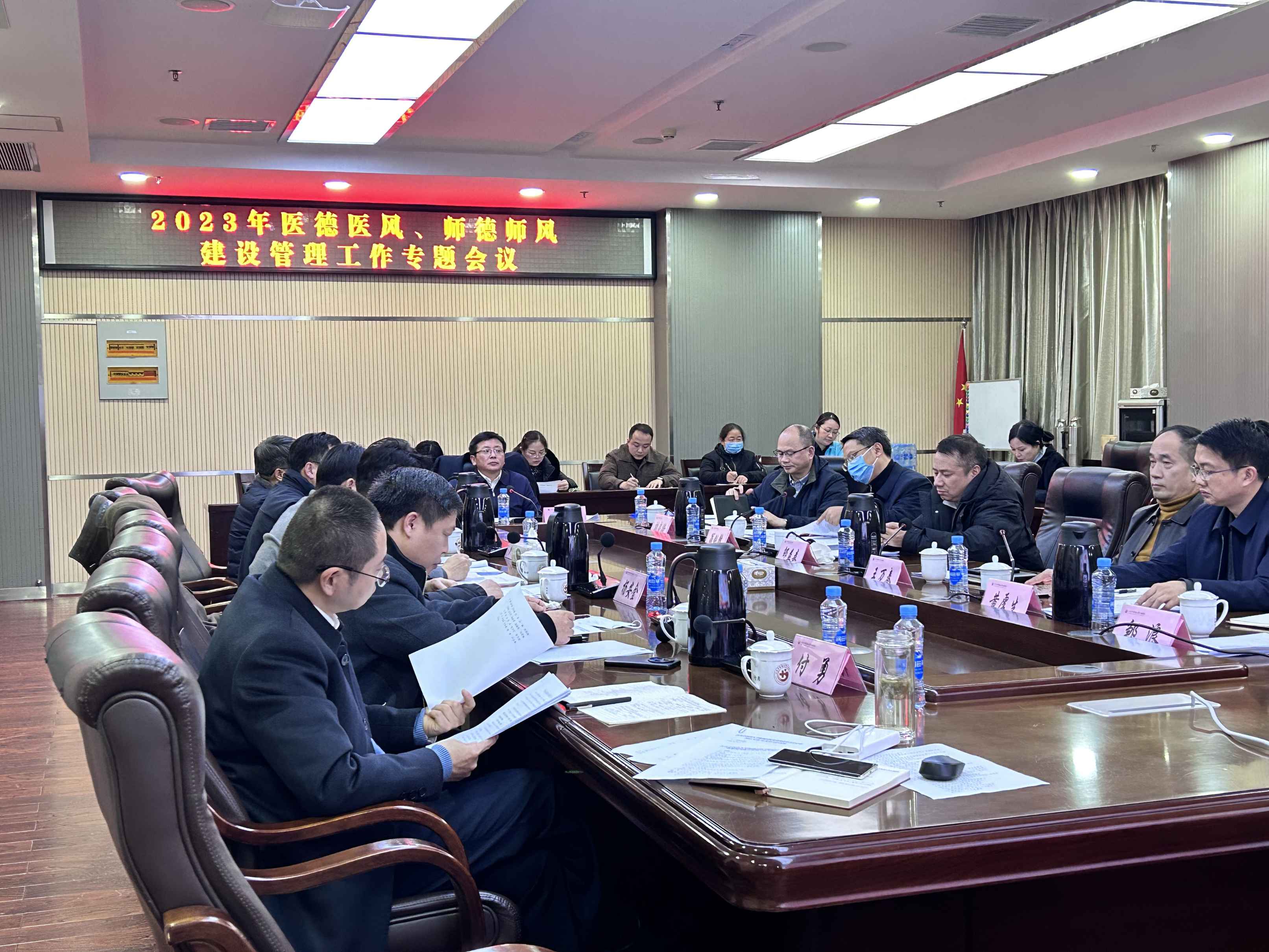 会议上,人力资源部、医务部、护理部、教学办负责人报告了2023年度医院医德医风、师德师风建设情况。副院长翁剑锋传达讲解了《医院医德医风、师德师风管理办法》文件精神,并对医德医风、师德师风2023年考核及2024年工作进行了安排布置。