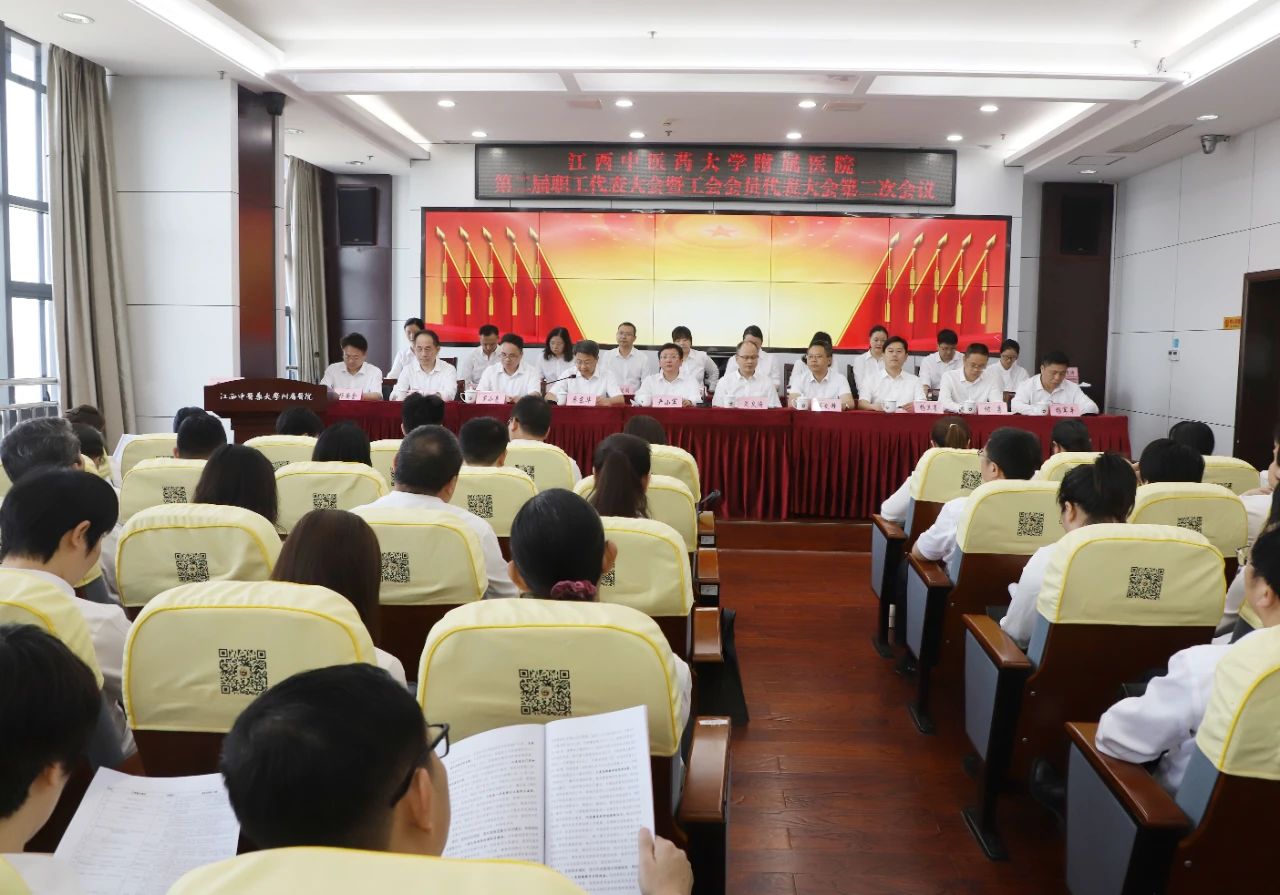 5月14-15日,江西中医药大学附属医院第二届职工代表大会暨工会会员代表大会第二次会议召开。学校党委委员、副校长,附属医院党委书记严小军出席并讲话。医院党委副书记、院长刘良徛作医院工作报告。大会由党委副书记廖东华主持。翁剑锋、罗小亮、杨卫星、王万春、付勇、杨安金、杨军平、邹浪等大会主席团成员出席会议并在主席台就座。