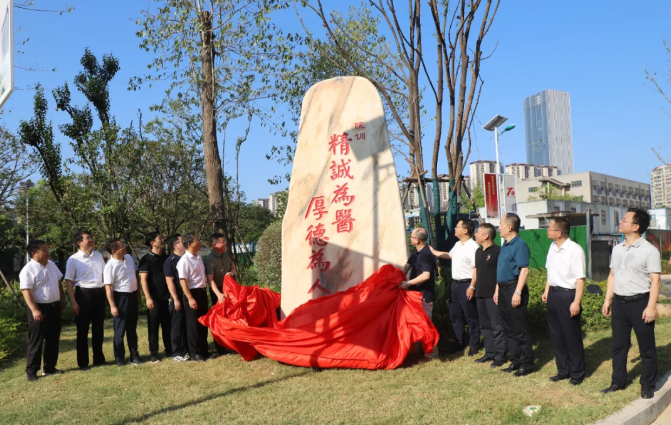 献礼70周年院庆 院训石落成 发布时间:2024-08-09点击次数:1361次 8月8日,在热烈的掌声中,江西中医药大学附属医院院训石在西湖院区落成。严小军、刘良徛等医院领导班子为院训石揭幕。 全院干部职工将以庆祝建院70周年和西湖院区全面投入使用为契机,发扬“精诚为医、厚德为人”院训精神,奋力推进医院高质量发展,努力在“中医药强省”和国家中医药综合改革示范区建设中作出更大贡献。 一审:杨萌 二审:陈雯越 三审:沈德森