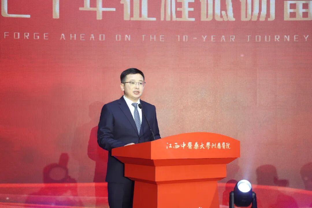 史可在致辞中代表江西省人民政府向医院表示热烈祝贺。他指出,近年来,我省深入贯彻落实习近平总书记关于中医药工作的重要论述和考察江西重要讲话精神,聚焦“走在前、勇争先、善作为”的目标要求,以国家中医药综合改革示范区建设为抓手,持续深化中医药改革,中医药科技创新能力不断增强,中医医疗服务水平有效提升,开创了中医药高质量发展新局面。江西中医药大学附属医院秉持“大医精诚,仁心仁术”的崇高理念,点亮了无数患者的生命之光,培育了洪广祥、伍炳彩、皮持衡等一大批名医大家,打造了医教研融合发展的先锋阵地,取得了热敏灸等重大中医药科研成果,成为了推动中医药强省建设的重要平台。