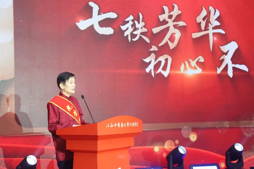 庆祝大会上,江西省人民政府副省长史可,江西省卫生健康委员会负责人,江西中医药大学党委书记徐兰宾,上海中医药大学附属龙华医院党委副书记、院长陈跃来,突尼斯卫生部公共卫生司司长达海克分别致辞。国家中医药管理局副局长、党组成员,中国中医科学院院长,中国工程院院士黄璐琦通过视频致辞,向附属医院70周年华诞表示诚挚祝福和美好祝愿。国医大师皮持衡教授,江西中医药大学附属医院党委副书记、院长刘良徛和青年医护工作者作为时光讲述人,深情讲述了一代代省中人躬耕杏林、仁心济世的动人故事。