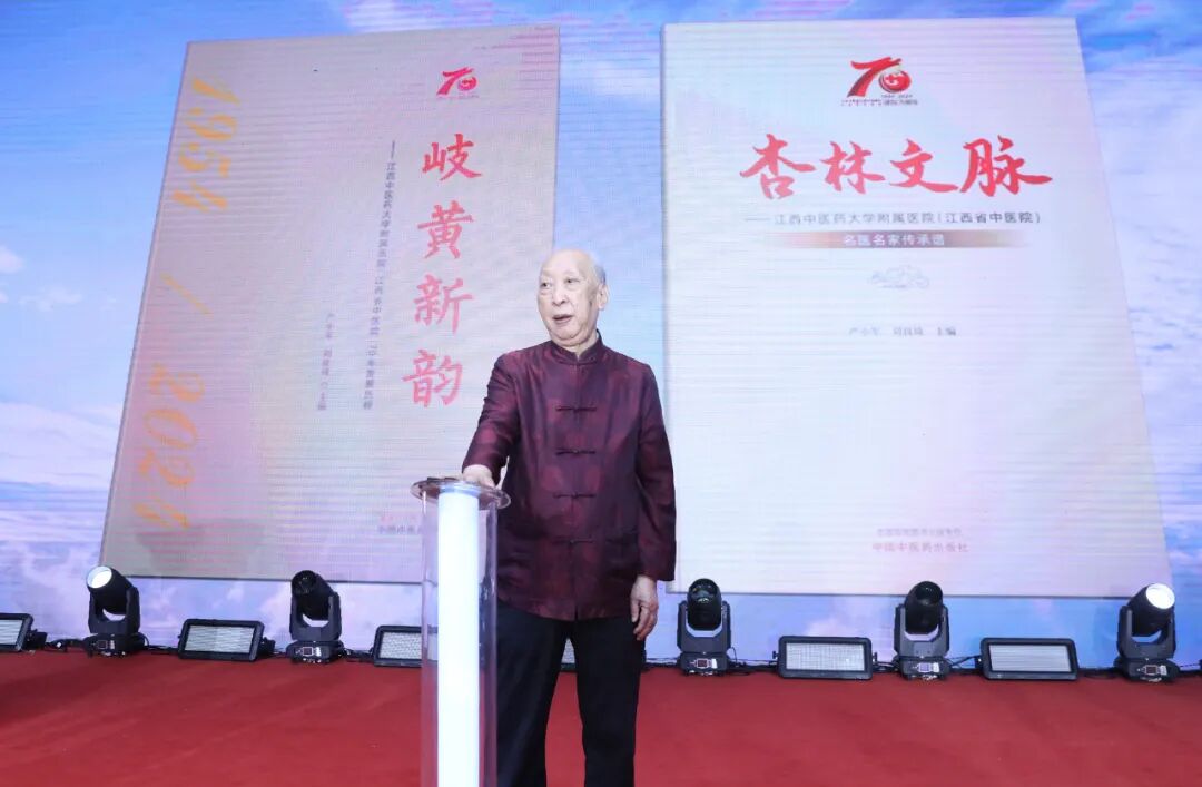 大会举行了向“光荣从医60年”老专家和优秀医护工作者代表献花仪式,发布新书《岐黄新韵--江西中医药大学附属医院(江西省中医院)70周年发展历程》《杏林文脉--江西中医药大学附属医院(江西省中医院)名老中医传承谱》,并以激光秀表演欢庆医院西湖院区全面运营启动。