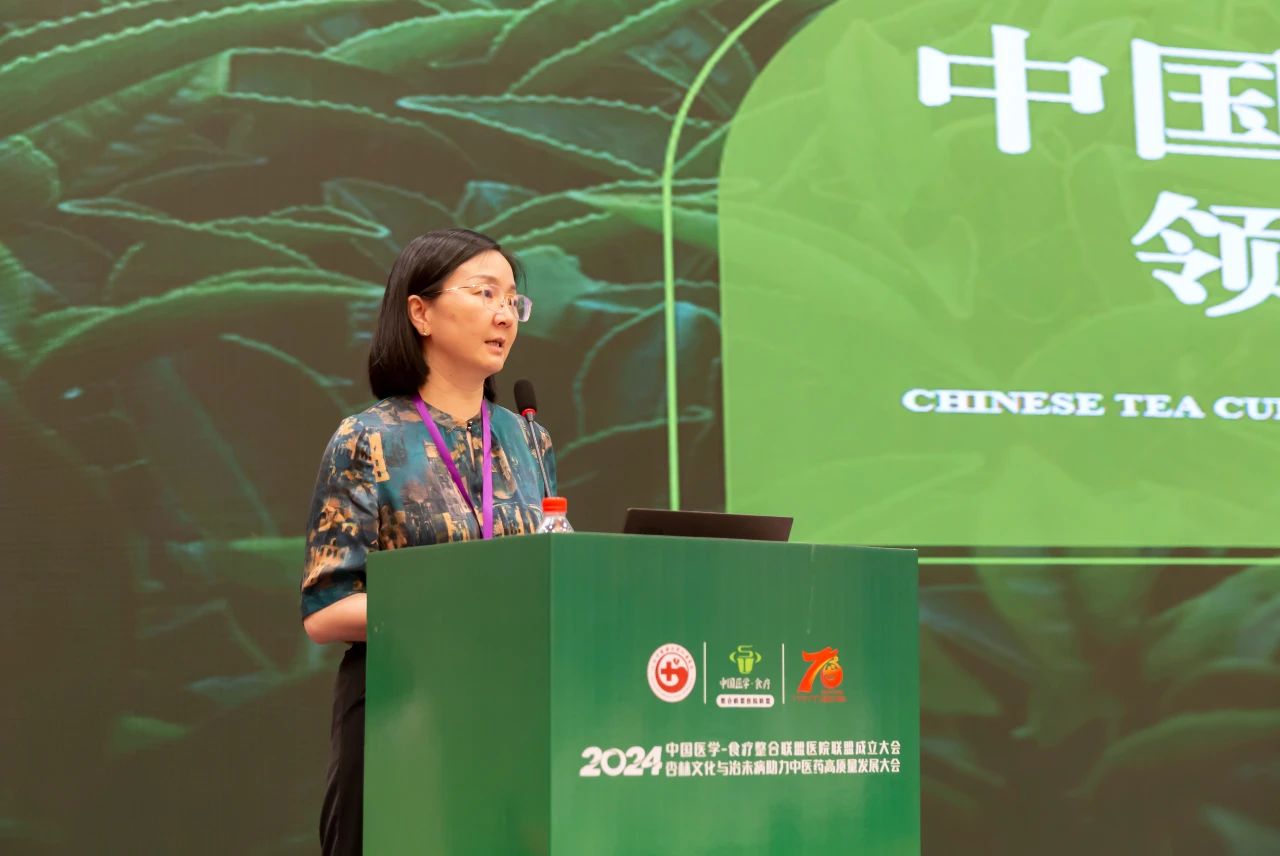 上海中医药大学附属龙华医院的肿瘤科执行主任,肿瘤三科主任周蕾教授作了题为“中国饮茶文化在肿瘤防治领域的研究前景探讨”的报告,她从中医药的角度分析了茶叶的药用价值,探讨了茶多酚等活性成分在抗癌方面的潜力,并提出了茶叶在临床治疗中起辅助作用的可能性。报告中,周教授还分享了肿瘤患者如何科学饮茶,以及如何将茶饮文化与现代医疗相结合,为患者提供更全面的治疗方案。她的分享为我们在中医药与现代医疗结合的道路上提供了宝贵经验和启发。