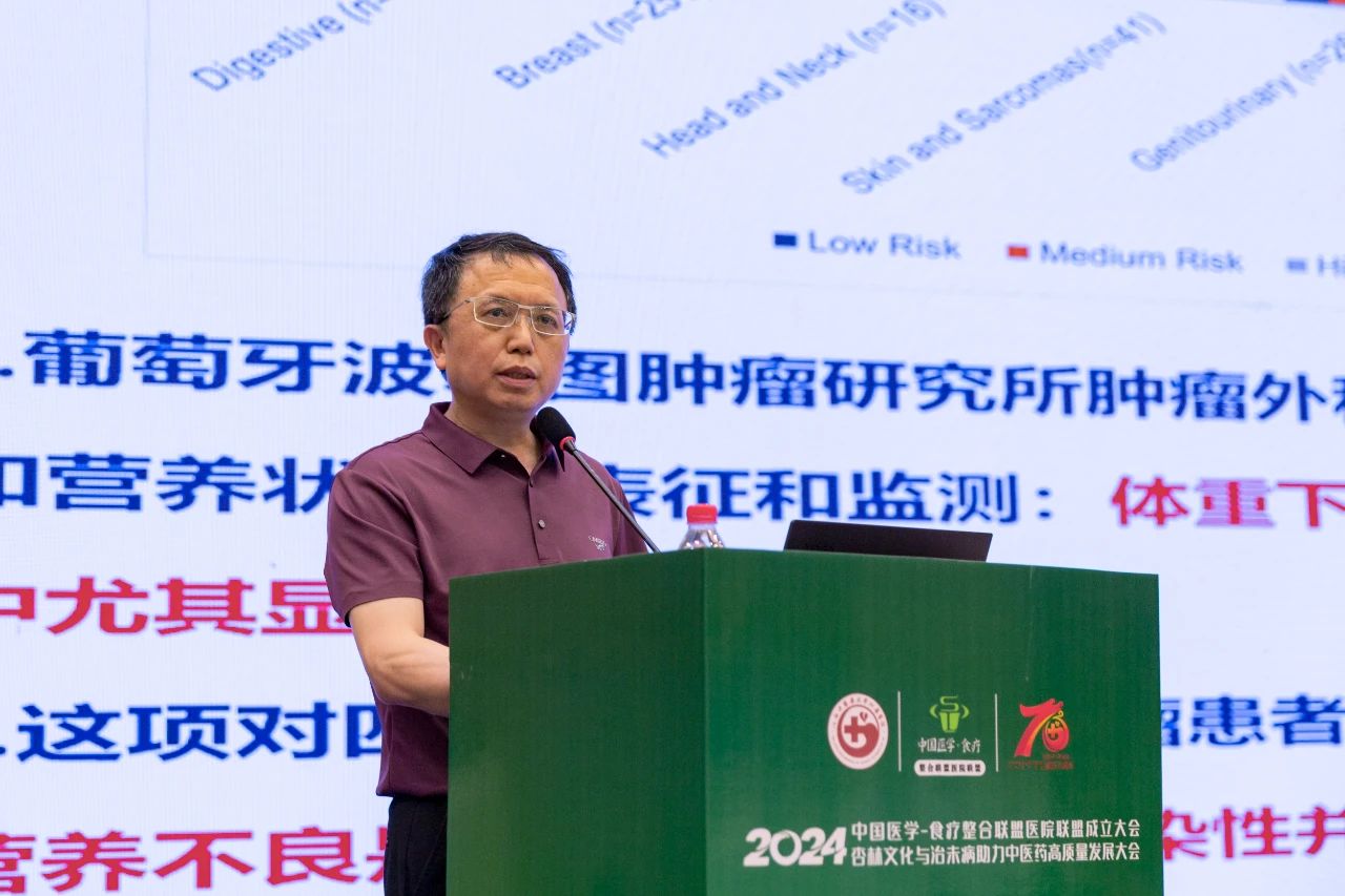 连云港市中医院党委委员、副院长王珩教授主持本场学术论坛的最后一个环节。江西中医药大学附属医院骨与软组织肿瘤科主任张兵教授以“药食合一 防治肉瘤”为主题作学术报告,介绍了骨肉瘤的基本情况,并深入探讨食疗在骨肉瘤治疗中的应用,提出了针对肿瘤患者的营养康复原则,推荐了适宜的食物选择,并强调了合理饮食在提高患者生活质量和促进康复中的重要性。张教授还分享了一些实用的食疗技巧,以及有助于减少骨肉瘤复发风险的食物清单。