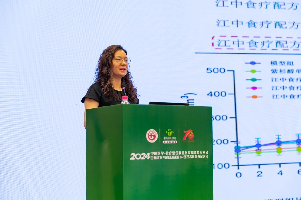 江中食疗科技有限公司中医门诊部主任尧梅香女士的报告主题是“食药同源产品的研发与产业化”,重点介绍了江中食疗公司如何将中医理论与现代工艺相结合,开发出猴姑米稀和猴姑饼干等养胃食疗产品。此外,她还分享了食疗产品在临床试验中的积极成果。尧女士的报告不仅展示了食疗产品的创新和科学验证,也突显了其在改善患者生活质量方面的实际应用。