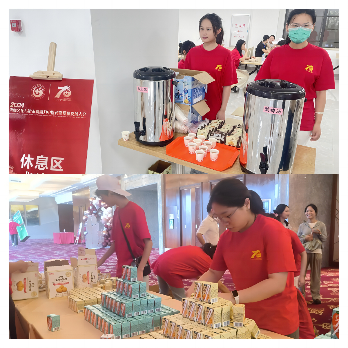 志愿者们或是在会场进行名牌及会议资料的发放,或是在专家入住酒店引导入住,整理、发放伴手礼;或是在户外维护交通,保证各位来访人员安全;或者在室内维护秩序,接待各专家并为其提供服务;或是协助媒体拍摄采访,帮助我院公众号推送视频进行剪辑;或是在茶歇点进行分茶水、点心的分发……