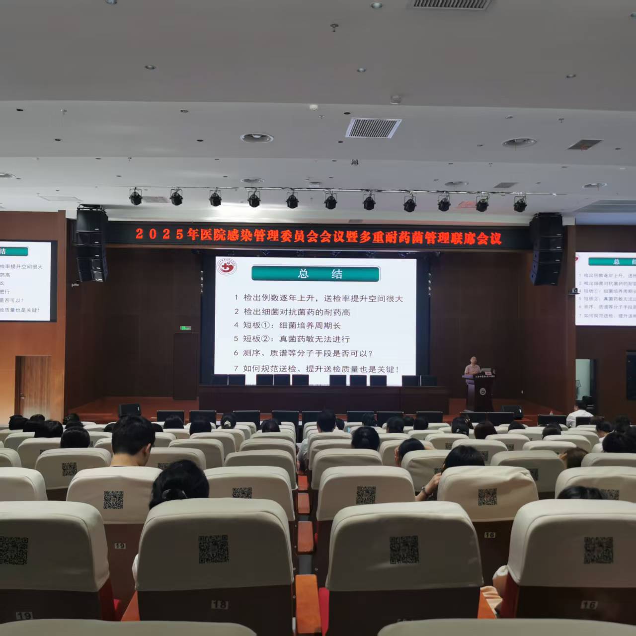 会议邀请检验科金桂林针对我院2025上半年细菌耐药性监测结果进行汇报,详细分析了我院当前耐药菌的分布特点、流行趋势、常见分离菌的耐药率及临床常见标本送检误区。