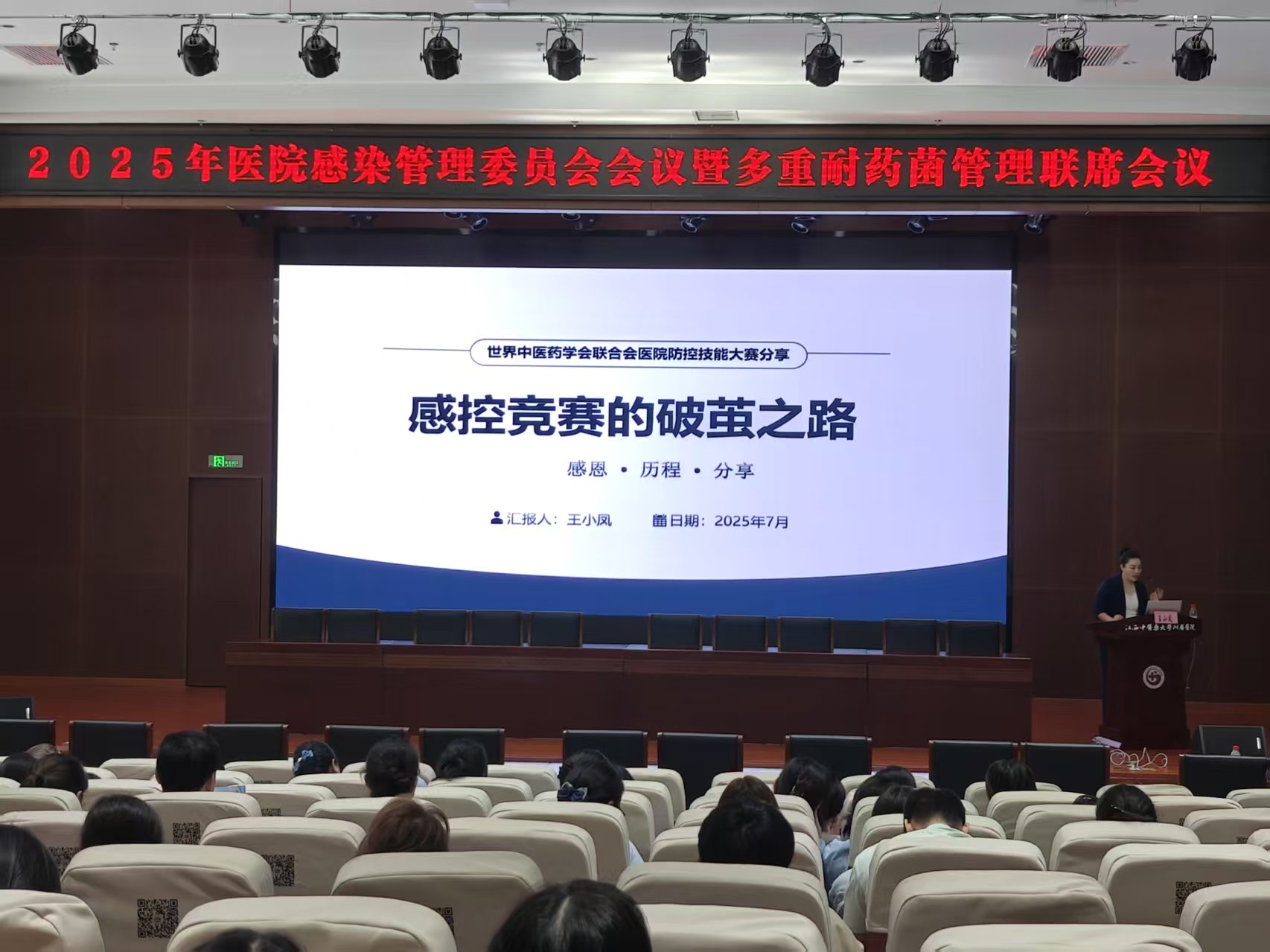 会议伊始,医院感染管理办公室副主任沈凤鸣对我院2025年上半年感控相关工作进行总结汇报,重点通报了院感相关指标控制情况、感控存在的问题及相应整改措施,并对2025年下半年工作计划精准部署。
