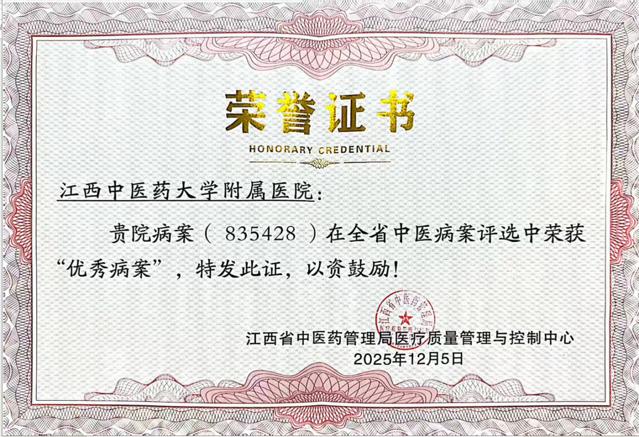 喜报!江西中医药大学附属医院儿科疑难病历获评全省“优秀病案”奖